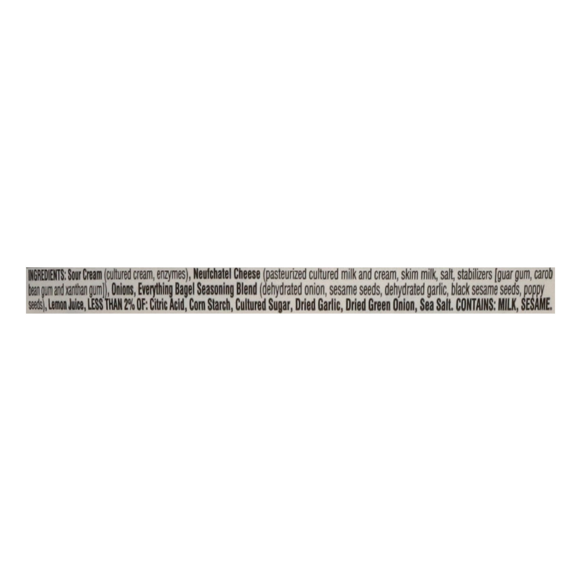 Sour Cream (Cultured Cream, Enzymes), Neufchatel Cheese (Pasteurized Cultured Milk and Cream, Skim Milk, Salt, Stabilizers [Guar Gum, Carob Bean Gum and Xanthan Gum]), Onions, Everything Bagel Seasoni…