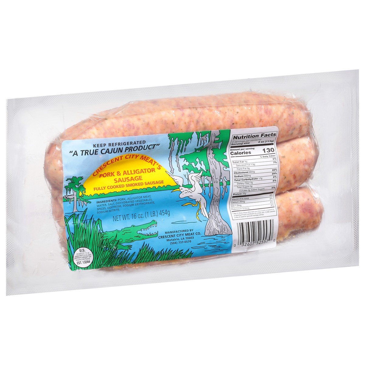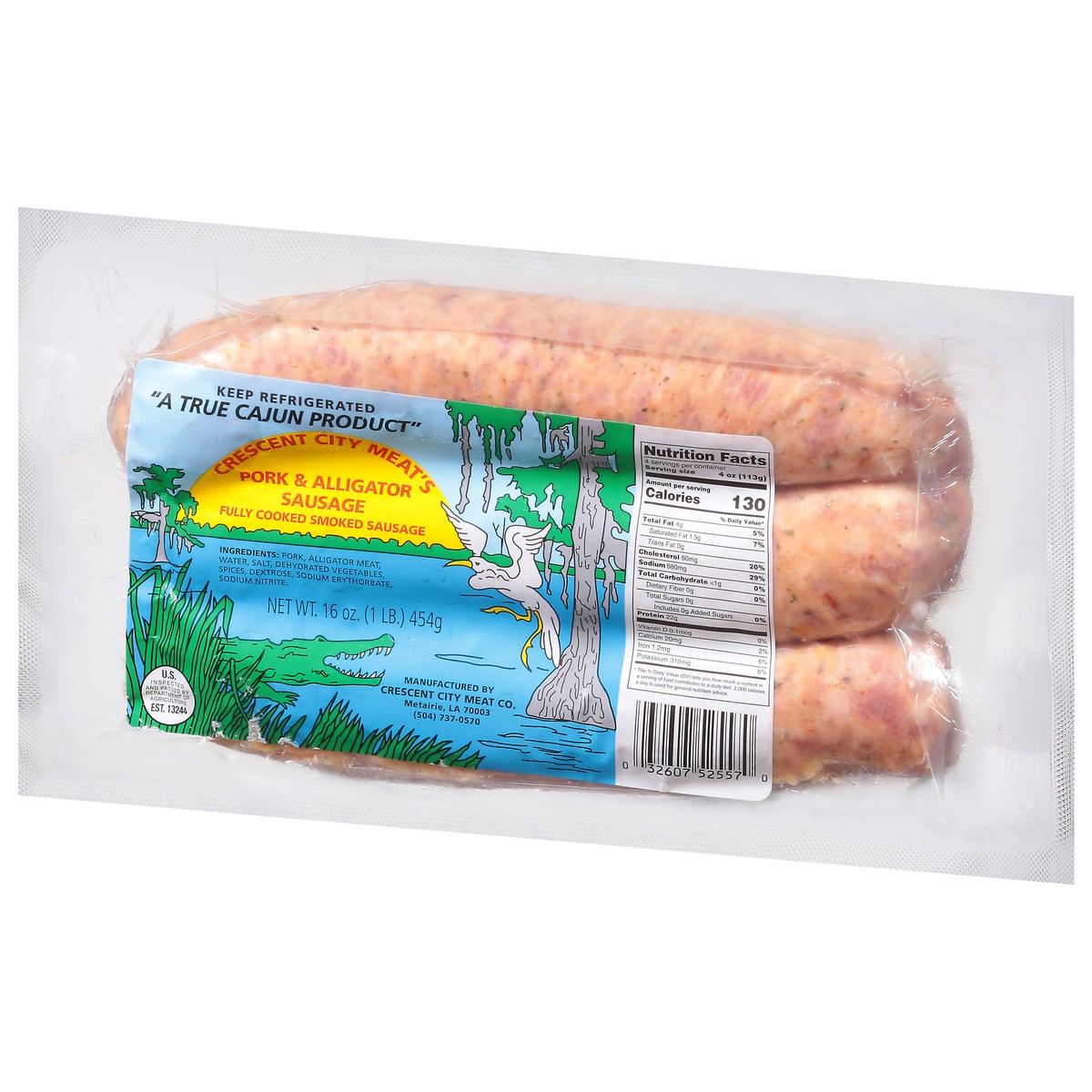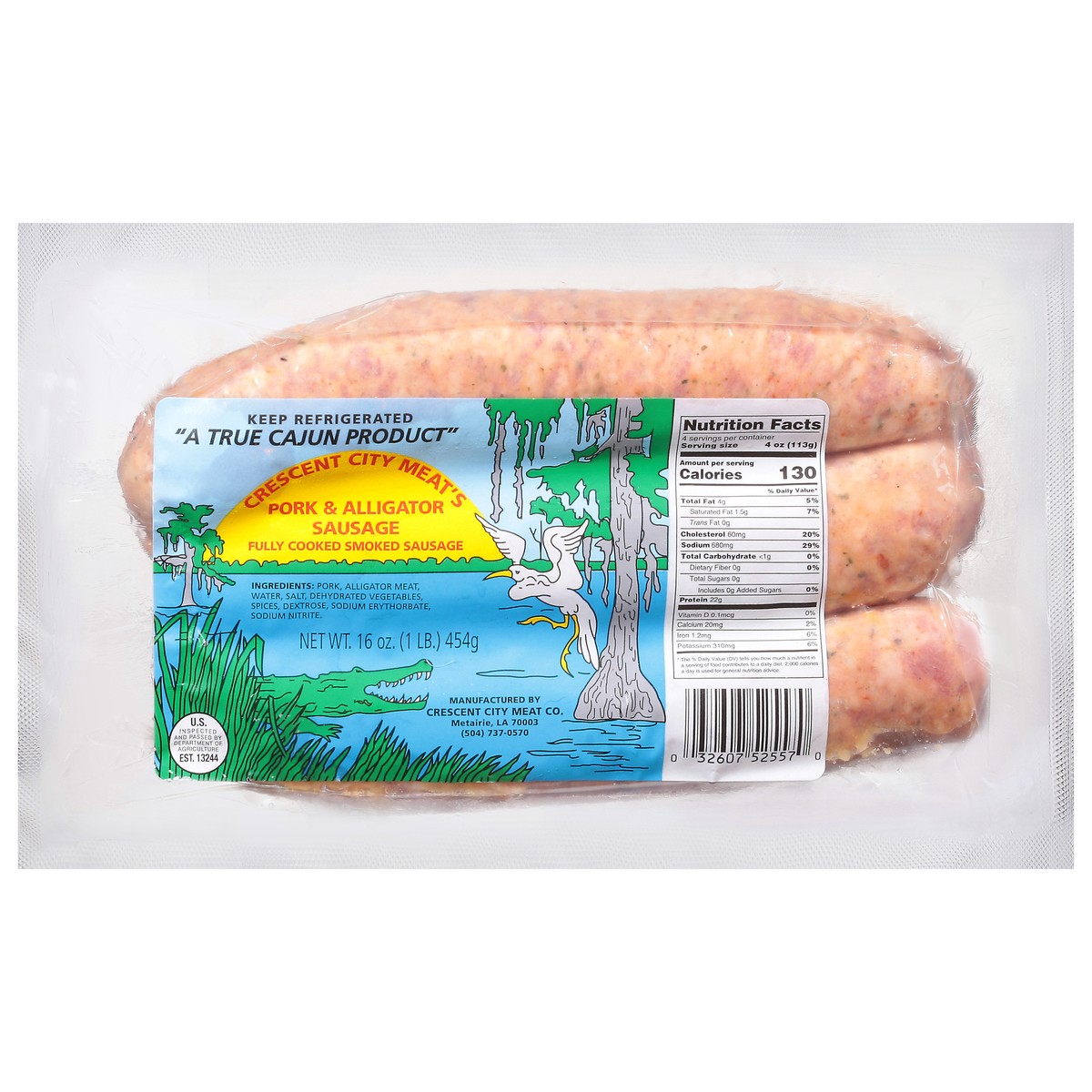 Crescent City Meat's Pork & Alligator Sausage 16 oz