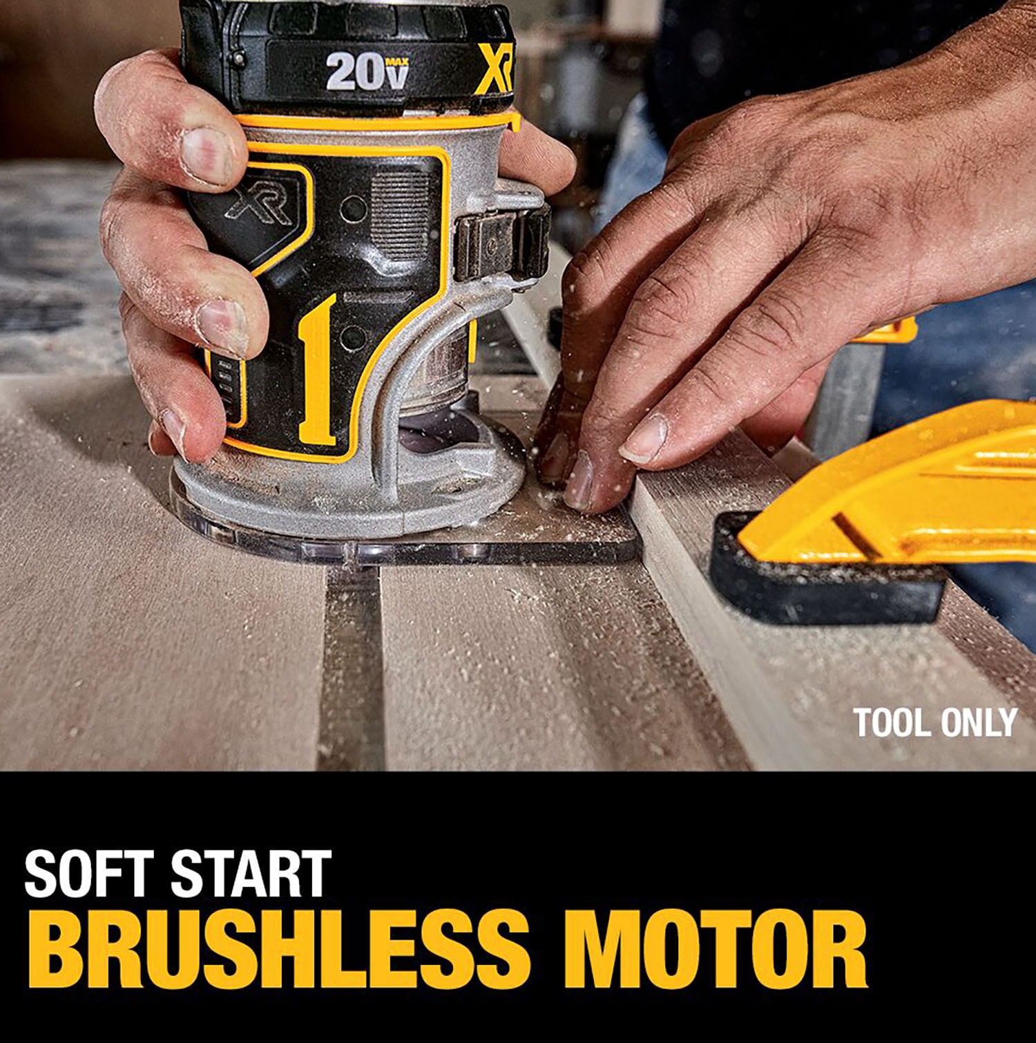 Dual LED lights help illuminate the work surface. Variable speed dial allows the user to match speed of the router to the application. Depth adjustment ring allows for fast and easy height adjustments…