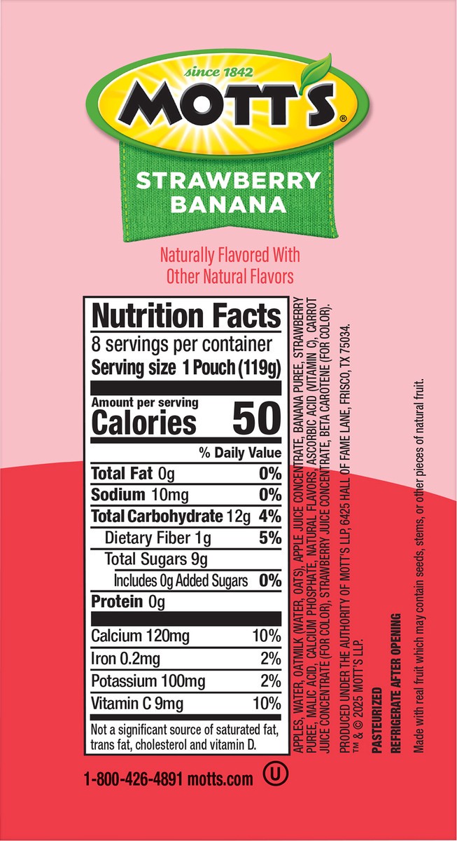 - REAL FRUIT: Mott’s Fruit Smoothies Strawberry Banana pouches are made with real fruit.