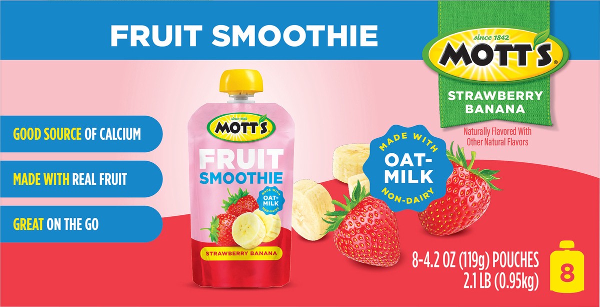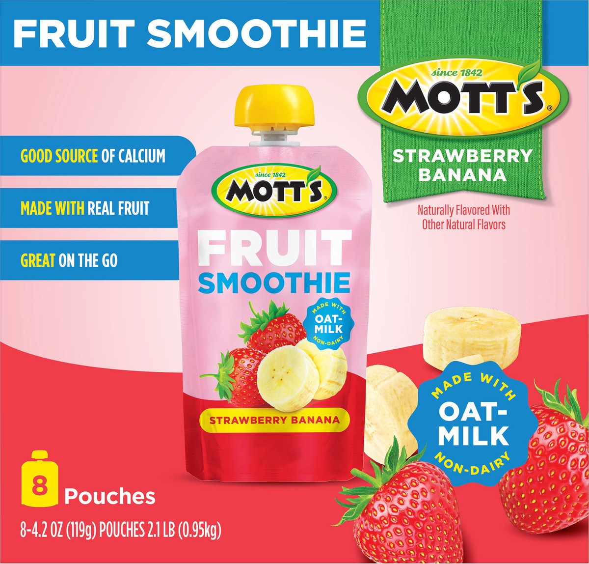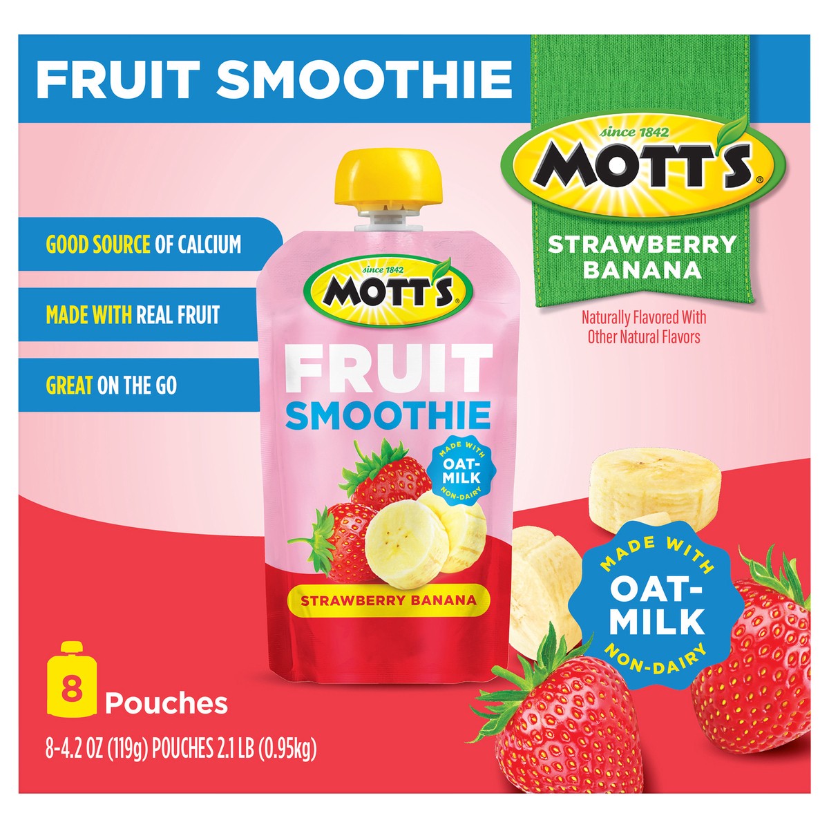 - PACKED WITH FLAVOR: Mott’s Fruit Smoothies Strawberry Banana contains oatmilk for a delicious fruit smoothie flavor the whole family will enjoy.