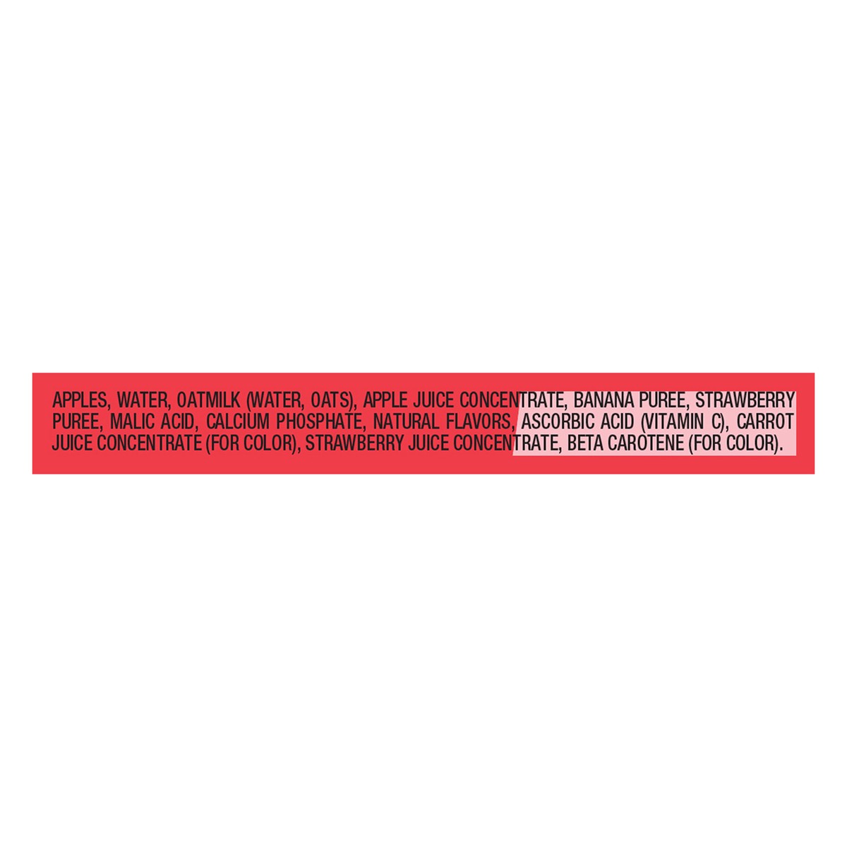 Apples, Water, Oatmilk (Water, Oats), Apple Juice Concentrate, Banana Puree, Strawberry Puree, Malic Acid, Calcium Phosphate, Natural Flavors, Ascorbic Acid (Vitamin C), Carrot Juice Concentrate (for …