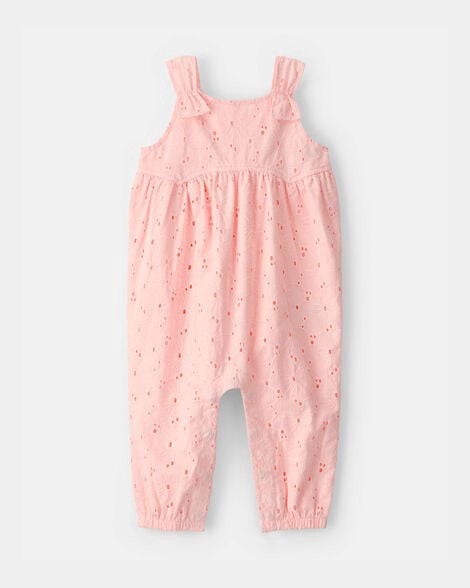 Baby Girl Eyelet Sleeveless Jumpsuit - Pink - 24M