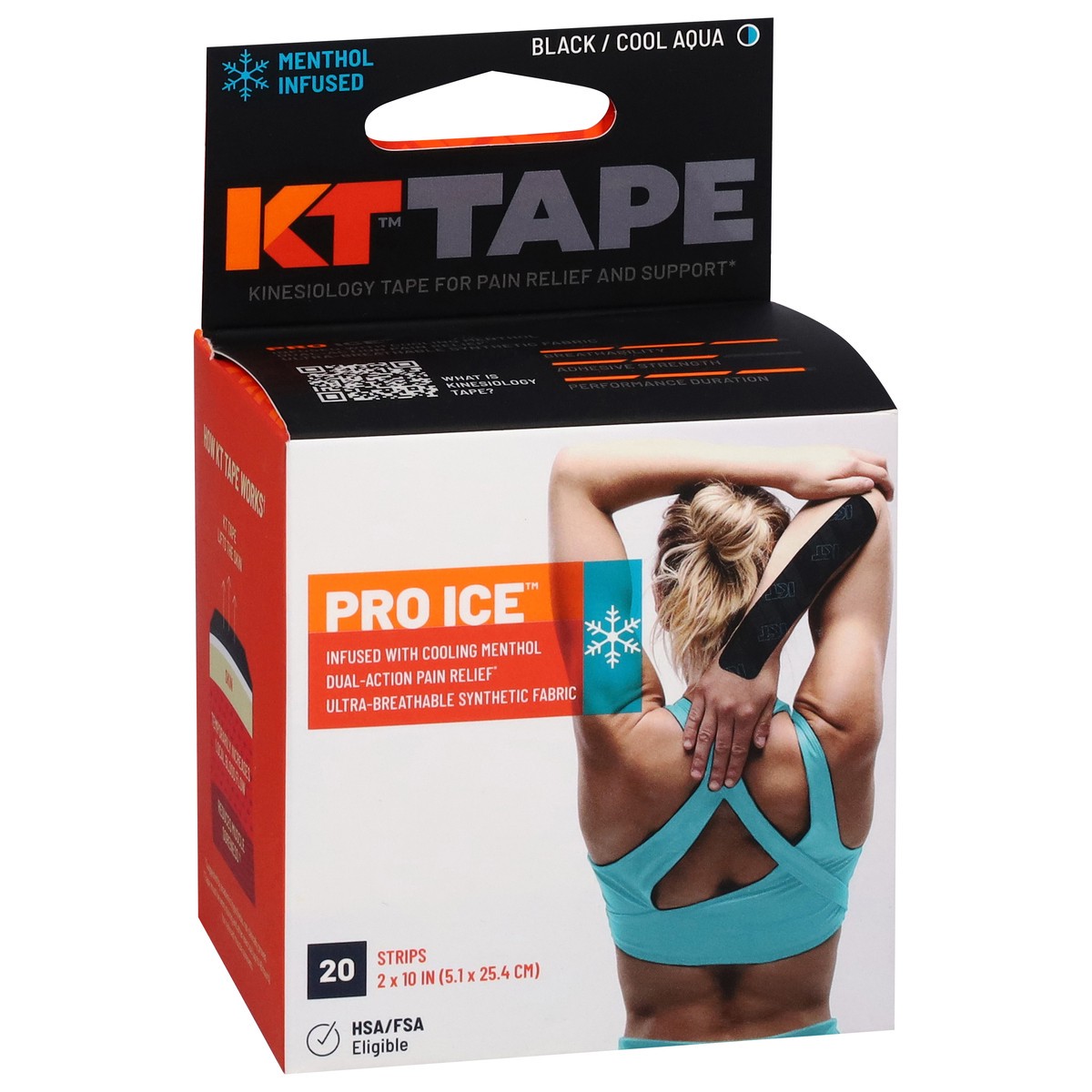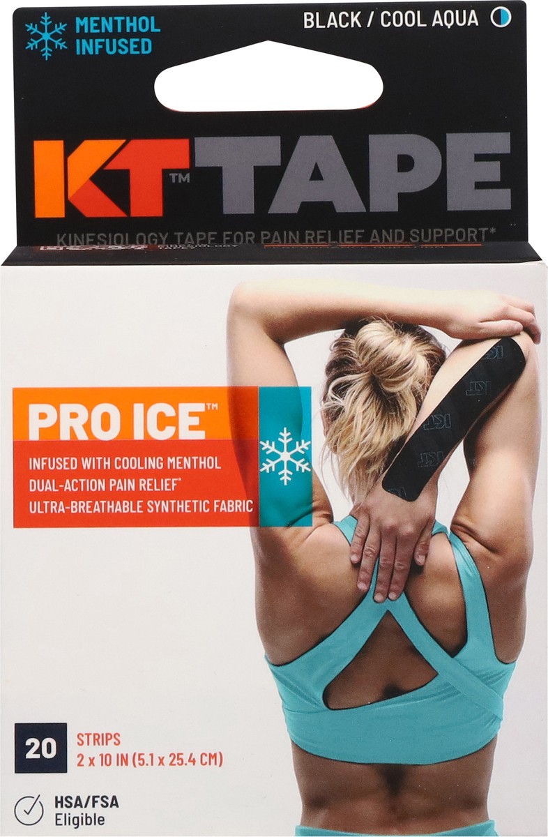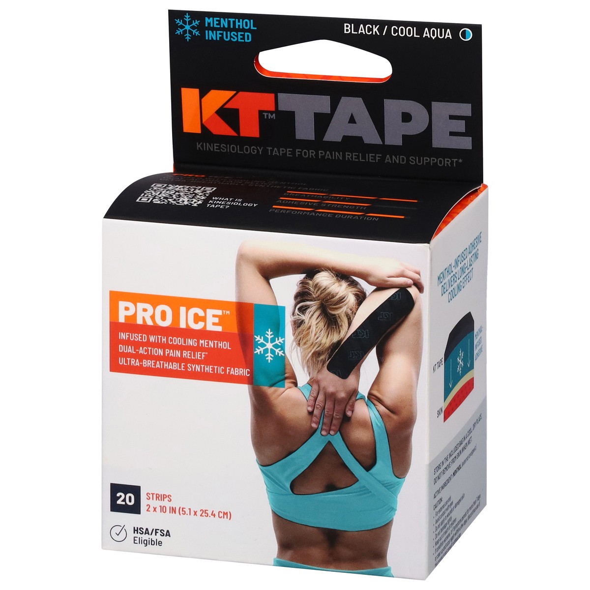 KT Tape Black/Cool Aqua Pro Ice Kinesiology Tape 20 ea