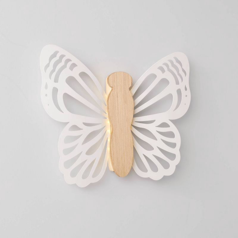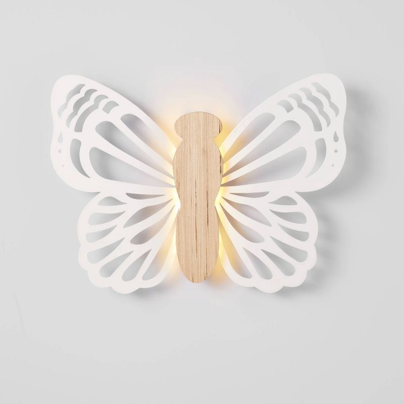 Brighten up your kiddo's room in fun, cute style with this Butterfly Wood Lit Wall Decor from Pillowfort™. It features a butterfly shaped construction with non-removable integrated bulb to enhance you…