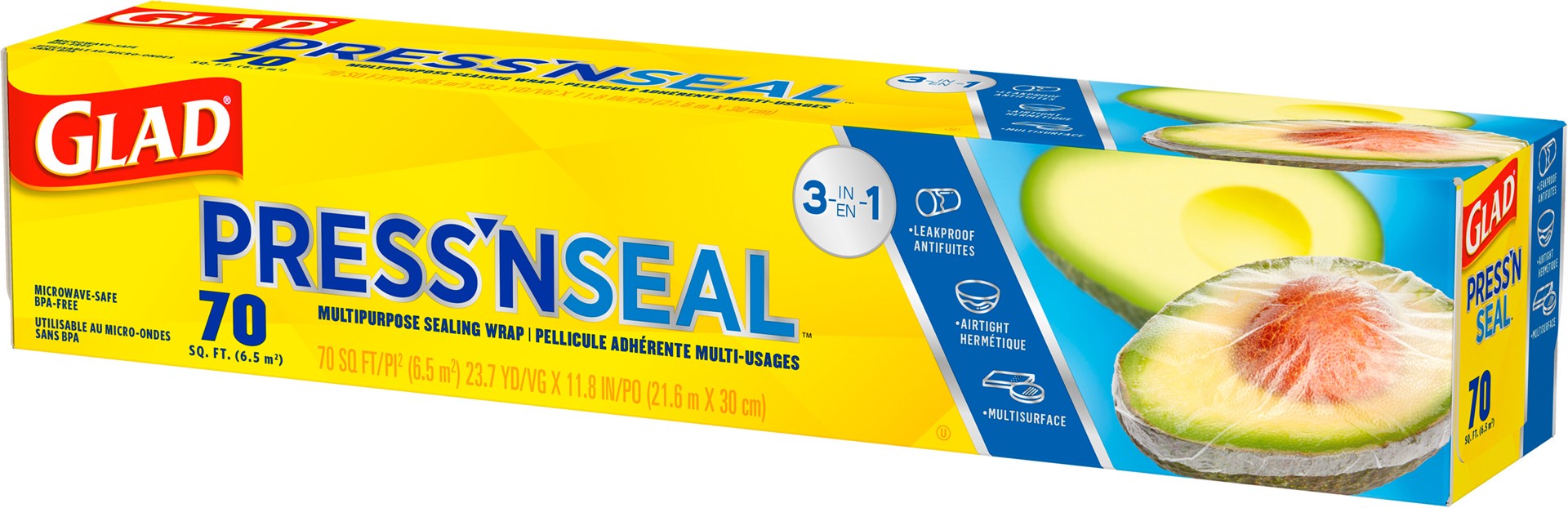 Glad Press'N Seal uses Griptex technology to protect food with a leak proof and airtight seal. Great for storing and protecting leftovers, this multipurpose wrap seals tightly onto a variety of surfac…