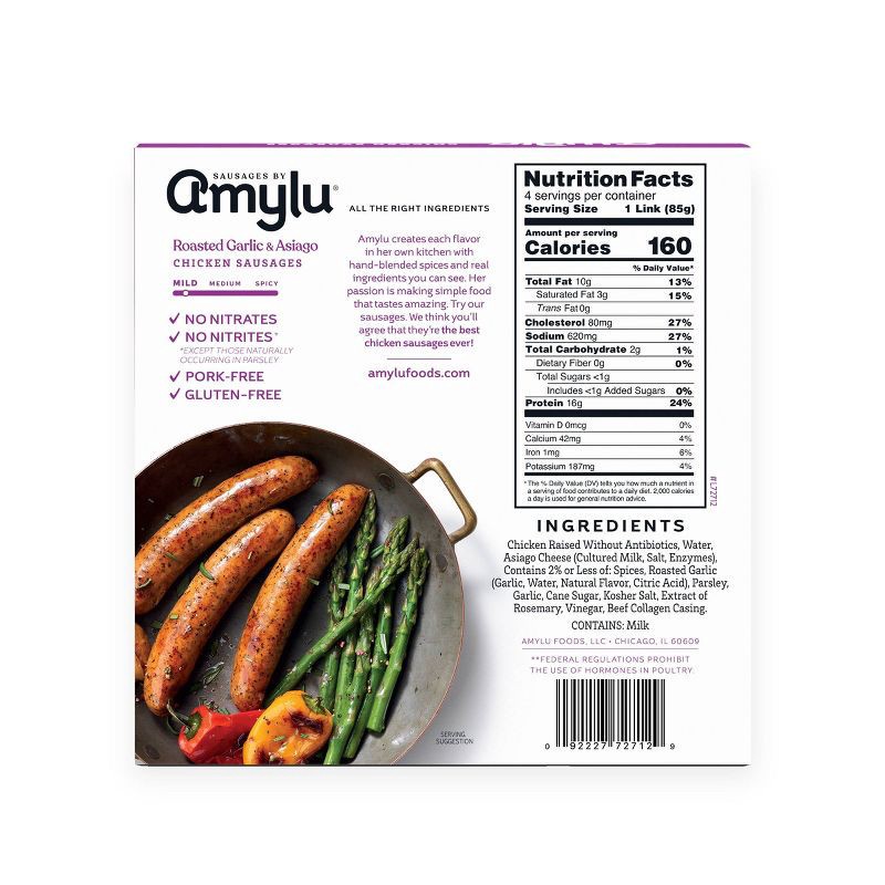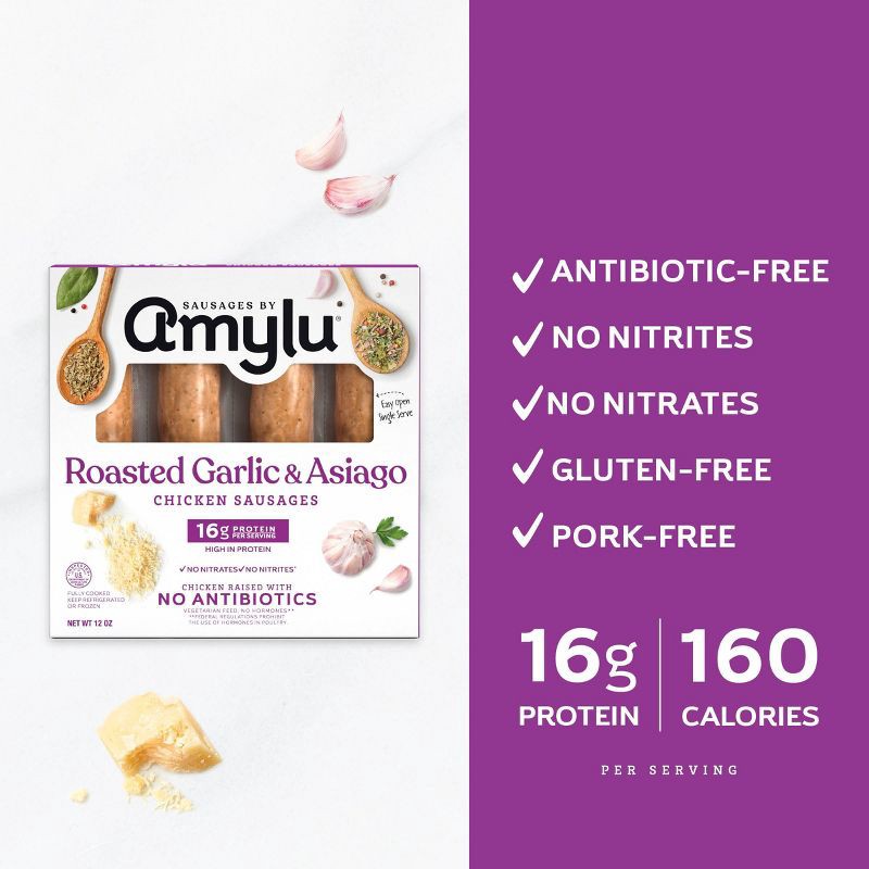 Amylu Foods Roasted Garlic & Asiago Chicken Sausage - 12oz