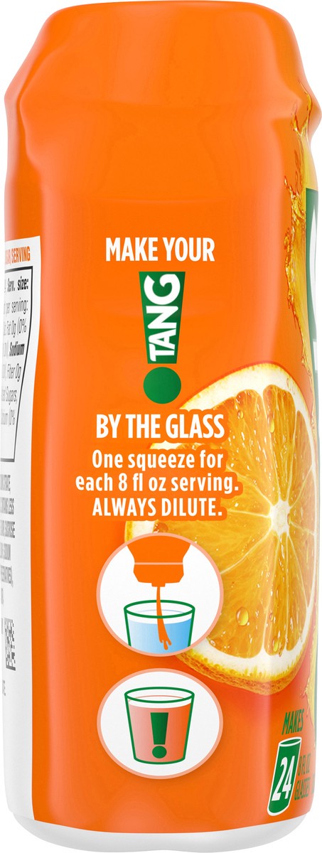 Tang Artificially Flavored Orange Liquid Drink Mix offers the classic citrus flavor you love in a convenient and compact squeezable bottle. Simply squeeze the drink concentrate into your glass or wate…