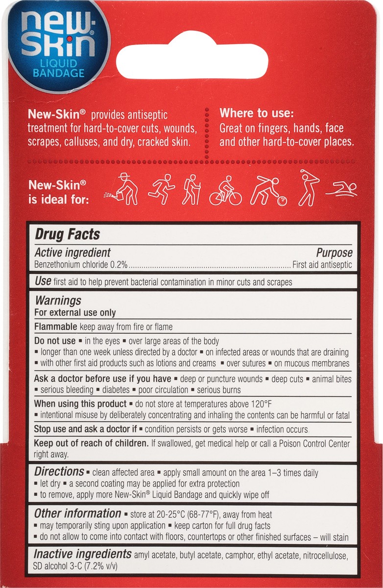 Active Ingredients: Benzethonium Chloride (0.2 %), First Aid Antiseptic. Inactive Ingredients: Amyl Acetate, Butyl Acetate, Camphor, Ethyl Acetate, Nitrocellulose, SD Alcohol 3-C (7.2% v/v).
