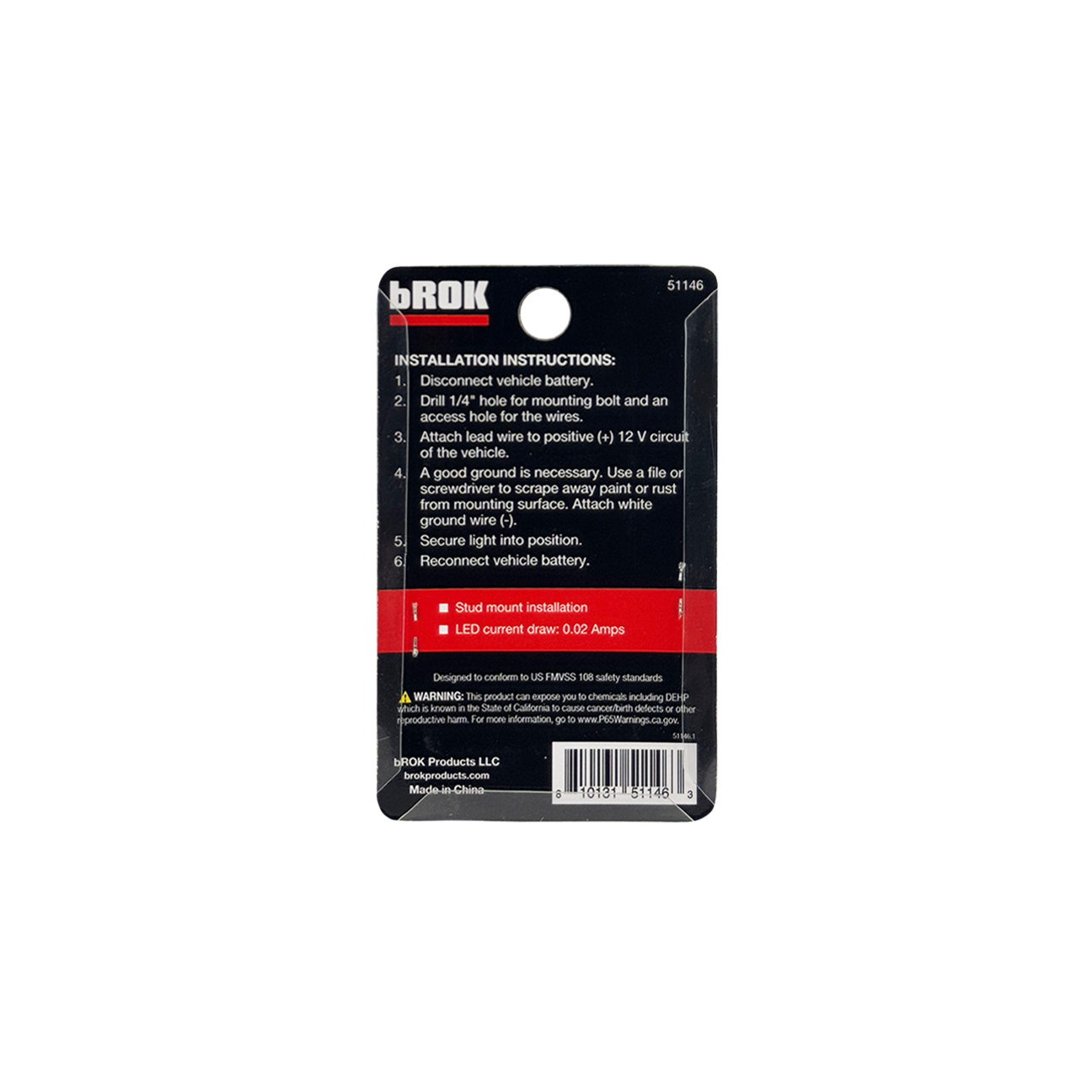 Works with 12V system. LED current draw 0.02 Amps. Stud mount.