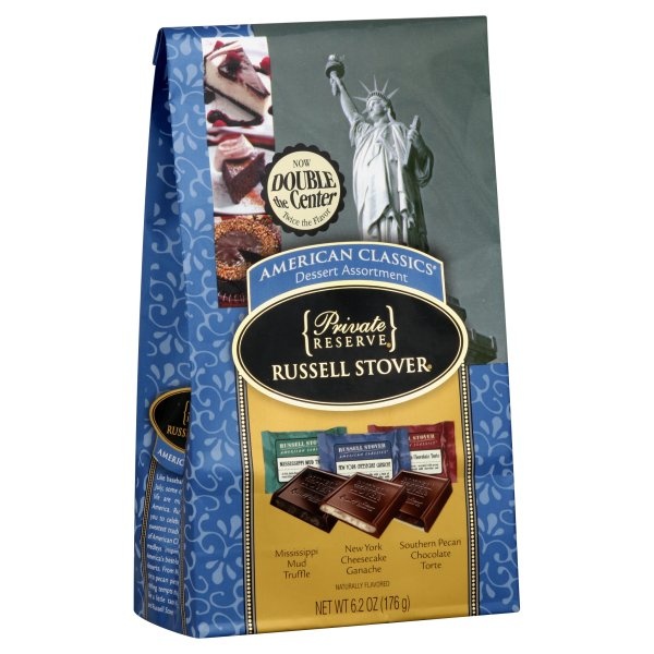 Now double the center. Twice the flavor. Mississippi mud truffle. New York cheesecake ganache. Southern pecan chocolate torte. Naturally flavored. American Classics: Like baseball and the fourth of Ju…