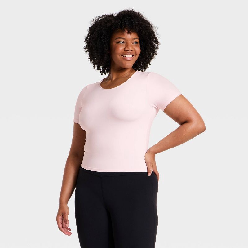 Women's Everyday Soft Cropped Short Sleeve T-Shirt - All In Motion™ Pink M
