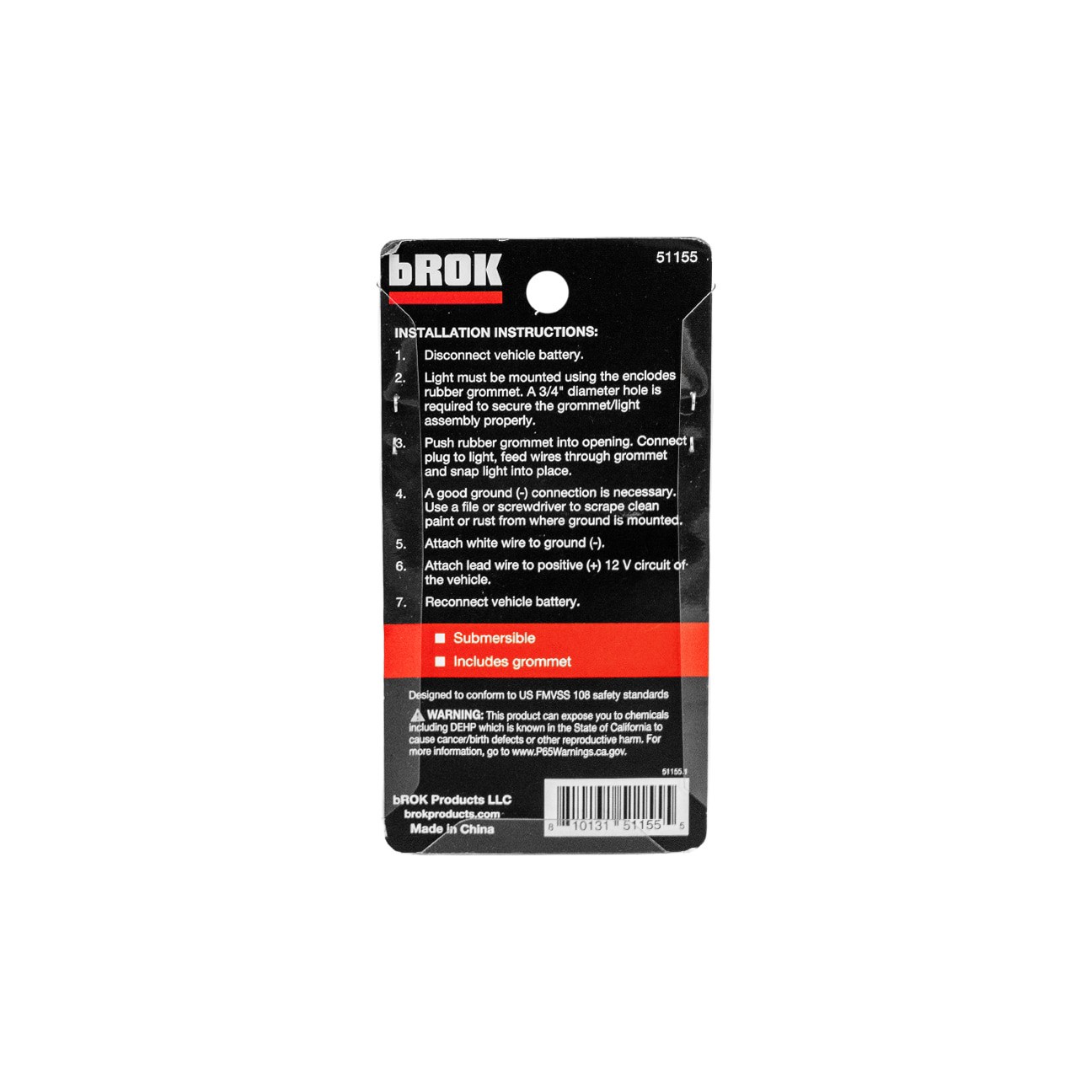 Works with 12V system. Submersible. Includes grommet.