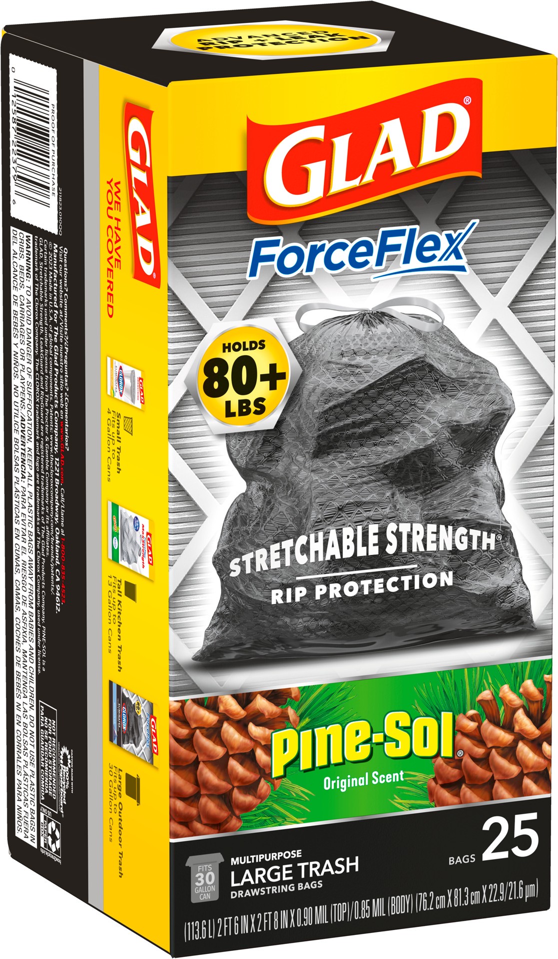 Glad ForceFlex Heavy Duty Large Trash Bags in Pine-Sol Original scent are the ideal solution for all your toughest cleanup jobs, indoors or outdoors. Featuring seven benefits in one bag, these 30 gall…