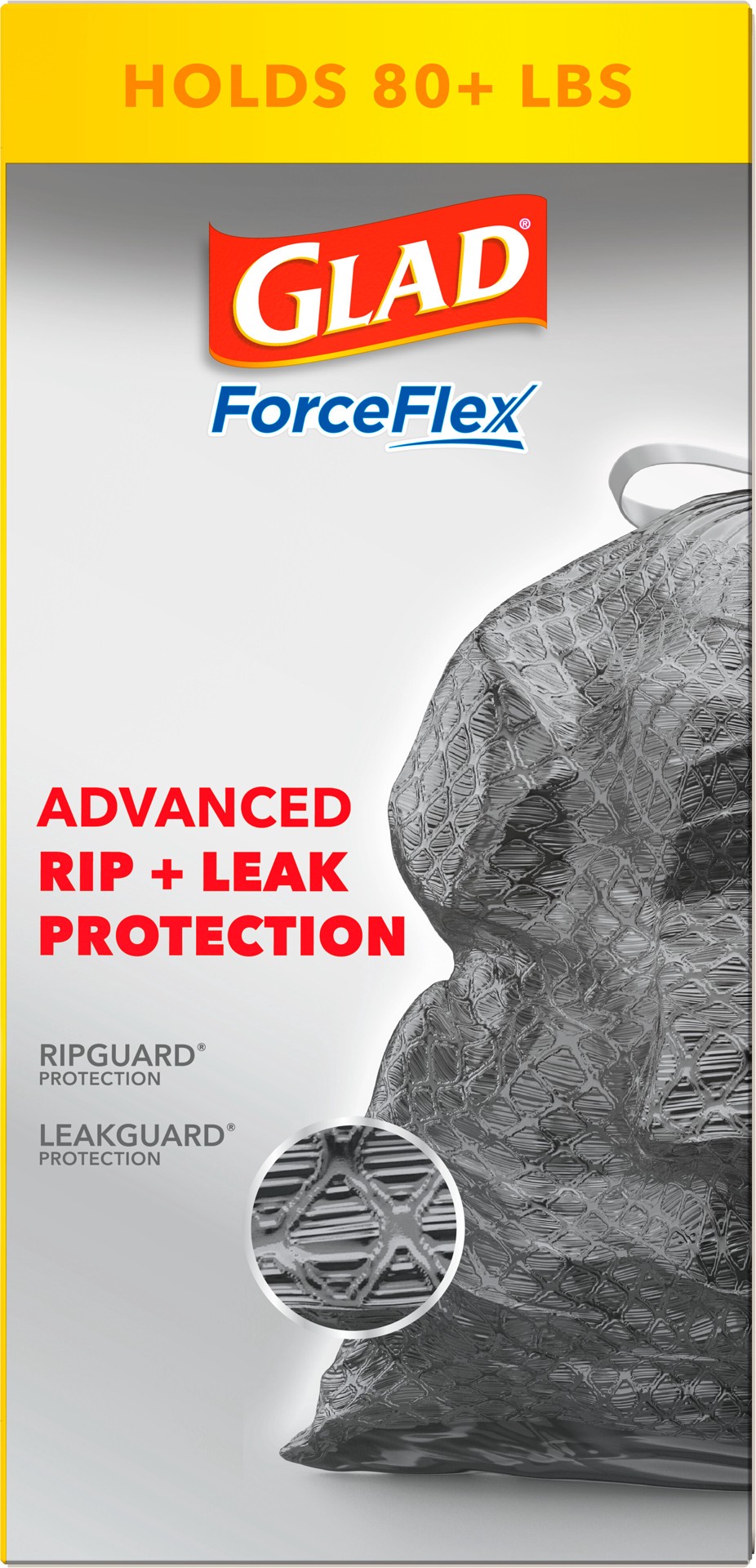 - GUARANTEED STRONG (1) TO HOLD 80+ POUNDS: Handle the heaviest cleanup loads with the guaranteed strength (1) of these 30 gallon Glad ForceFlex garbage bin liners
