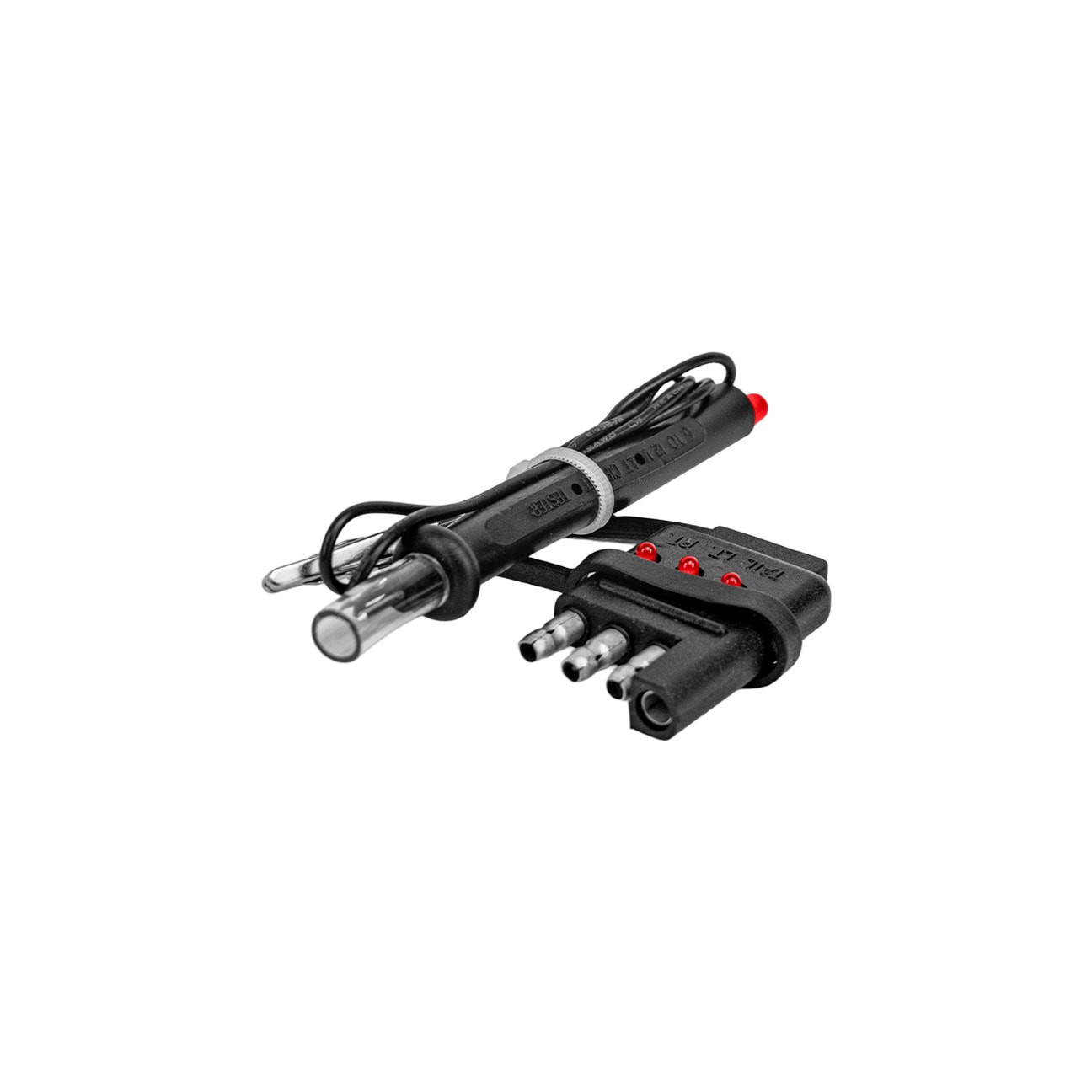 LED's verify electrical continuity. Alligator clip for easy ground attachment. Multi-use application.