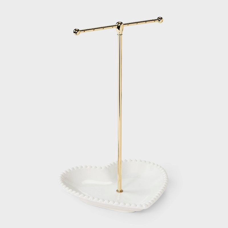 Valentines Ceramic Jewelry Stand with Tray Heart - A New Day™ - White/Gold
