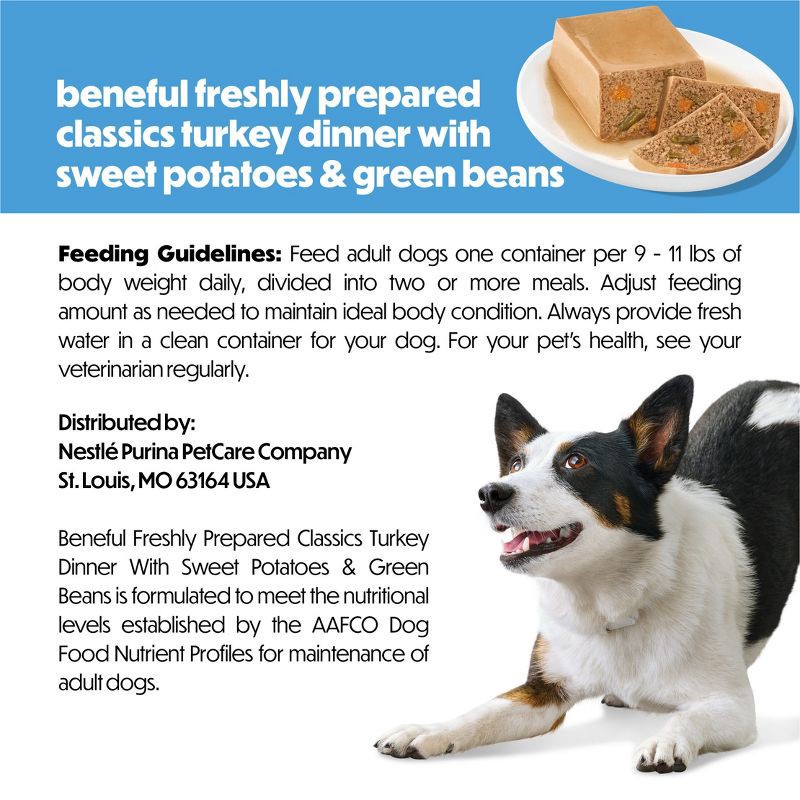 - Made with Turkey Dog Food: Purina Beneful Freshly Prepared Classics Turkey Dinner adult dog food is made fresh with real turkey and vegetables and steam cooked to lock in flavor.