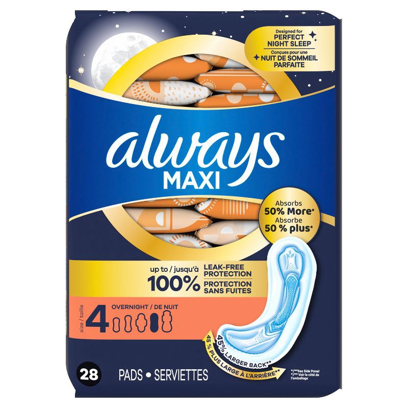 Always Maxi Overnight Pads provide you a PERFECT NIGHT SLEEP with 45% larger back vs Always Maxi Size 1 for better coverage during the night. If you're looking for uncompromised period protection, you…