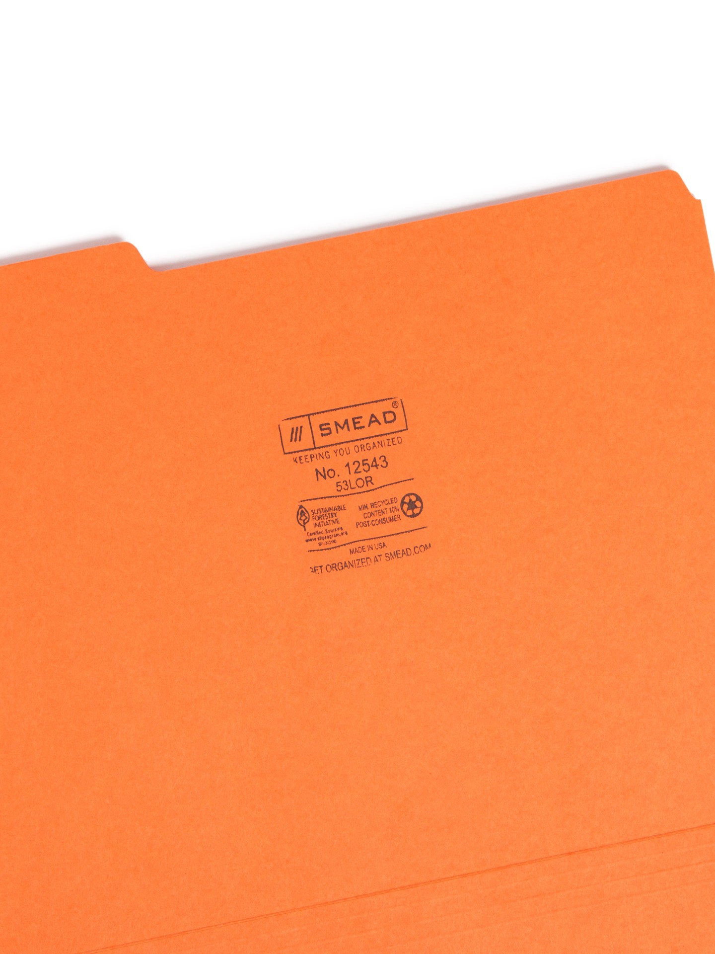 Smead File Folder, 1/3-Cut Tab, Letter Size, Orange, 100 per Box