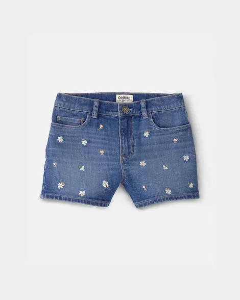 Oshkosh Girls Floral Denim Embroidered Shorts - Medium Wash Blue 7