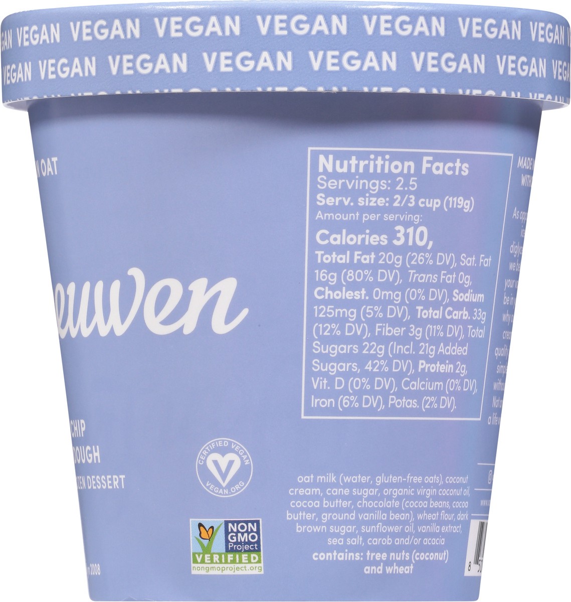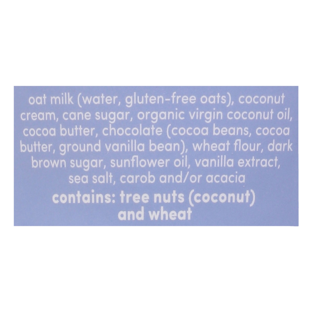 Oat Milk (Water, Gluten-Free Oats), Coconut Cream, Cane Sugar, Organic Virgin Coconut Oil, Cocoa Butter, Chocolate (Cocoa Beans, Cocoa Butter Ground Vanilla Bean), Wheat Flour, Dark Brown Sugar, Sunfl…