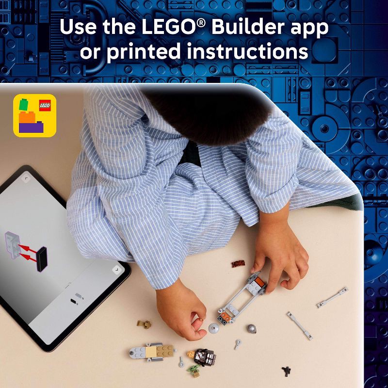 - 2 LEGO STAR WARS MINIFIGURES – Includes The Mandalorian minifigure equipped with a blaster pistol that converts into a blaster rifle, and the Grogu figure to place in the attached satchel