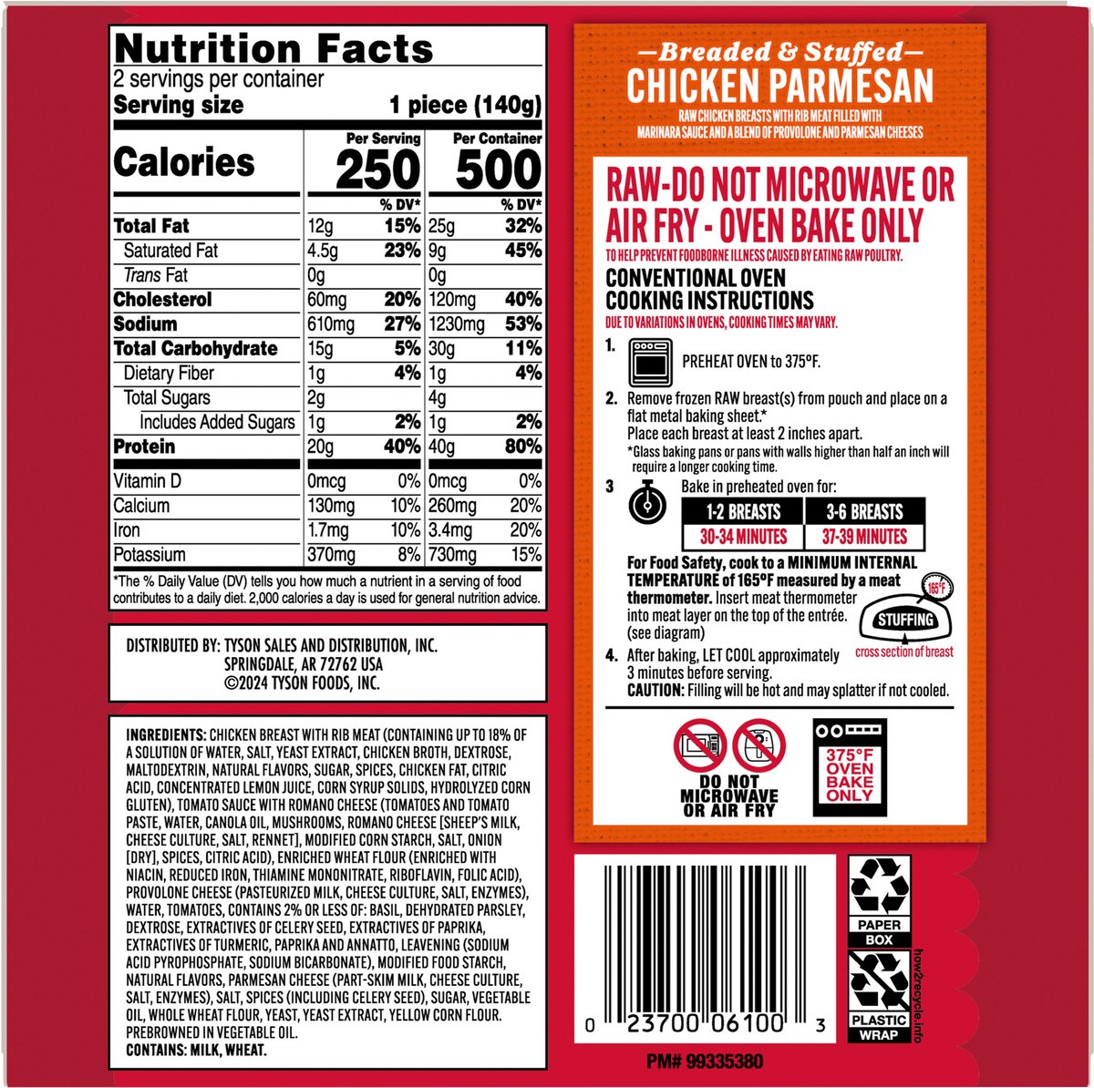 - One 2 ct package of Tyson Breaded Raw Stuffed Chicken Breasts Chicken Parmesan