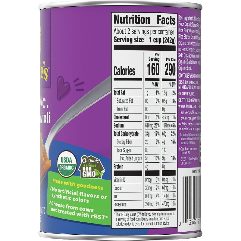 - Contains: A 15 oz. Can of Organic Cheesy Ravioli