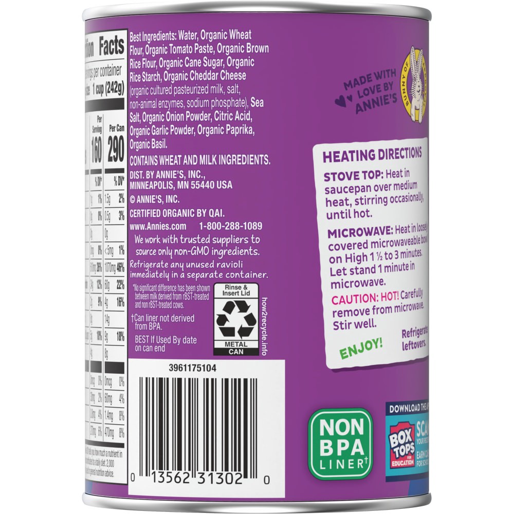 Annie's Organic Cheesy Ravioli in Tomato and Cheese Sauce, 15 oz