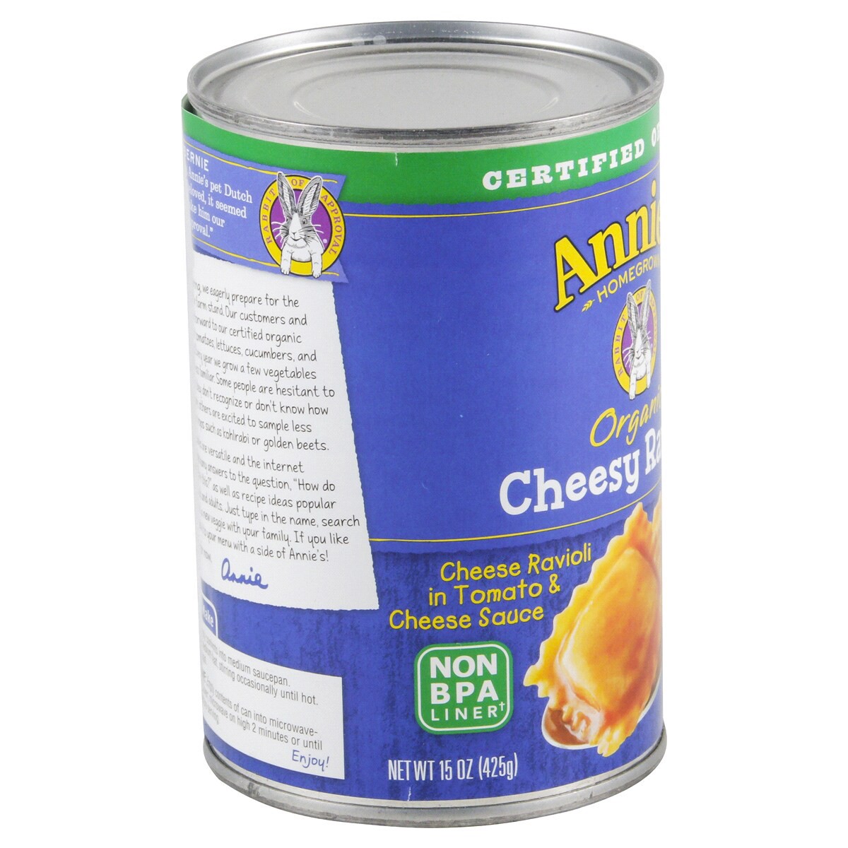 Easy and cheesy! Annie''s certified organic Cheesy Ravioli is made with organic pasta “pillows” filled with yummy organic cheese smothered in our traditional organic tomato and cheese sauce. Cheesy Ra…