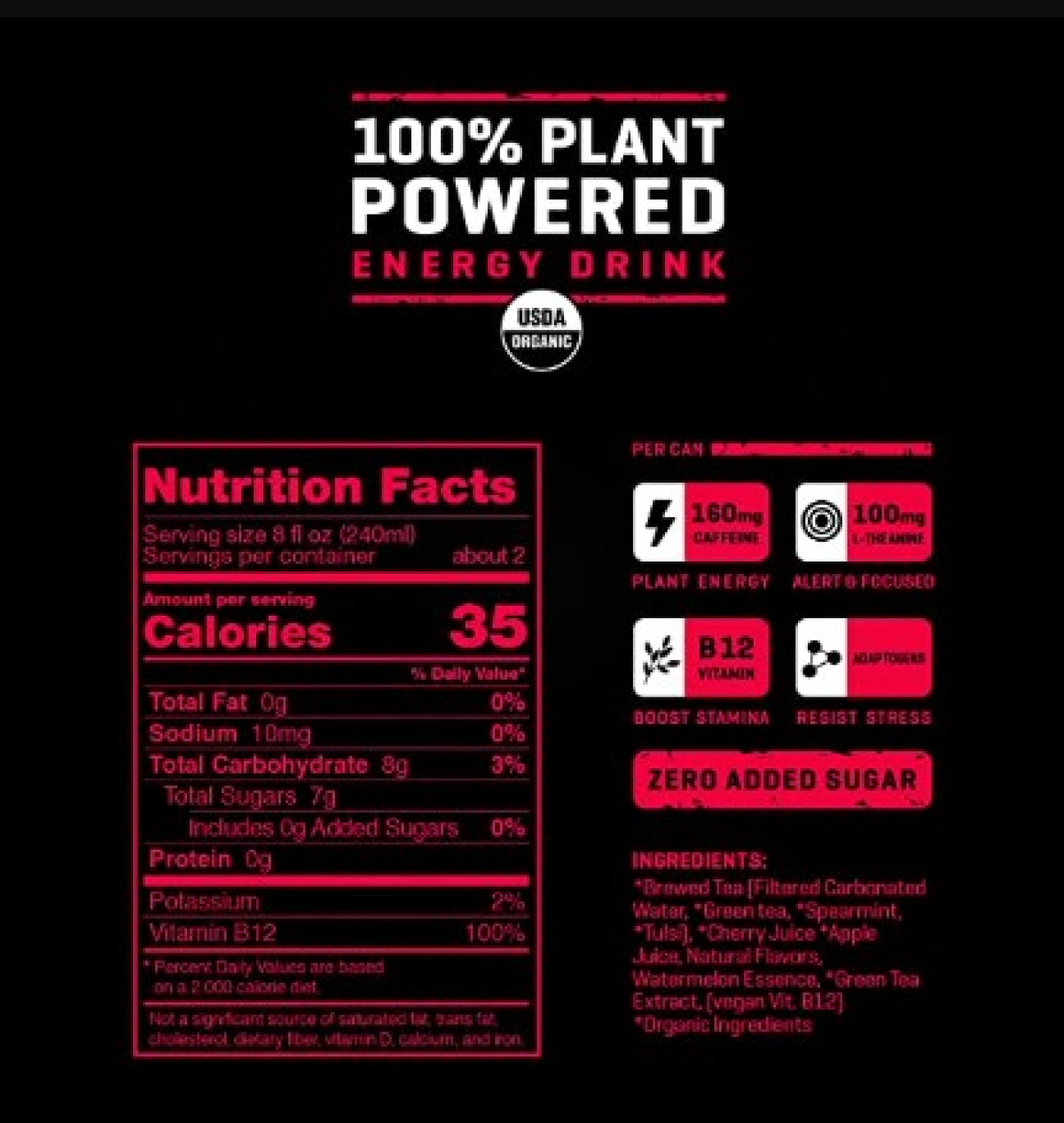 Brewed Tea (Filtered Carbonated Water (Organic Ingredients), Green Tea (Organic Ingredients), Spearmint (Organic Ingredients), Tulsi (Organic Ingredients)), Cherry Juice (Organic Ingredients) Apple Ju…
