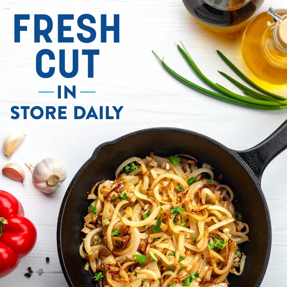 Fresh Cut Julienned Yellow Onions, Cooking shortcut. Fresh Cut Julienned Yellow Onions save you prep time and tears. Ready to sauté for fajitas, caramelize for burgers, or add to soups.