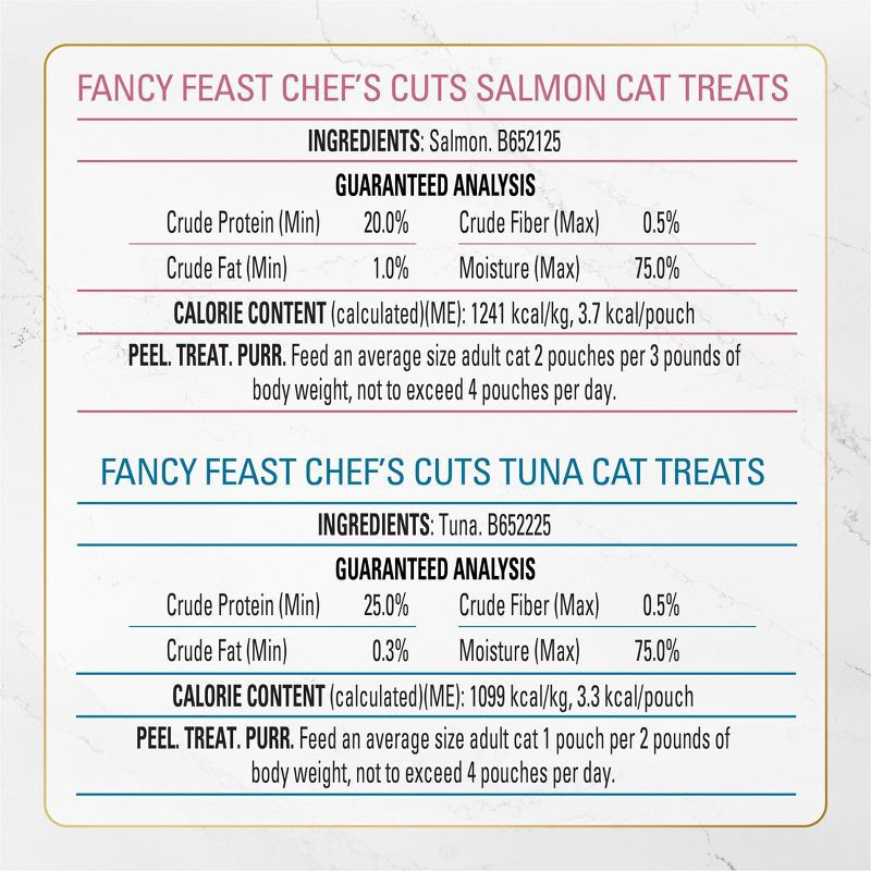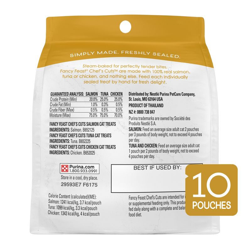 Purina Fancy Feast Chef's Cuts Real Variety Pack Natural Cat Treats are the right balance of taste and texture. Indulge your cat's love of seafood and poultry one tasty bite at a time. Made of pure, n…
