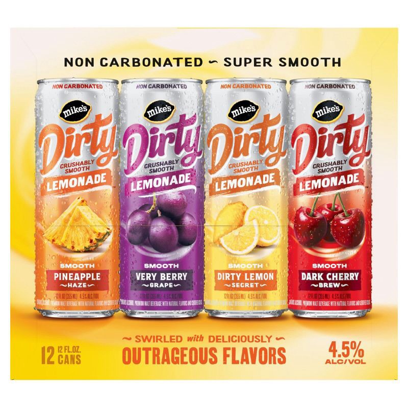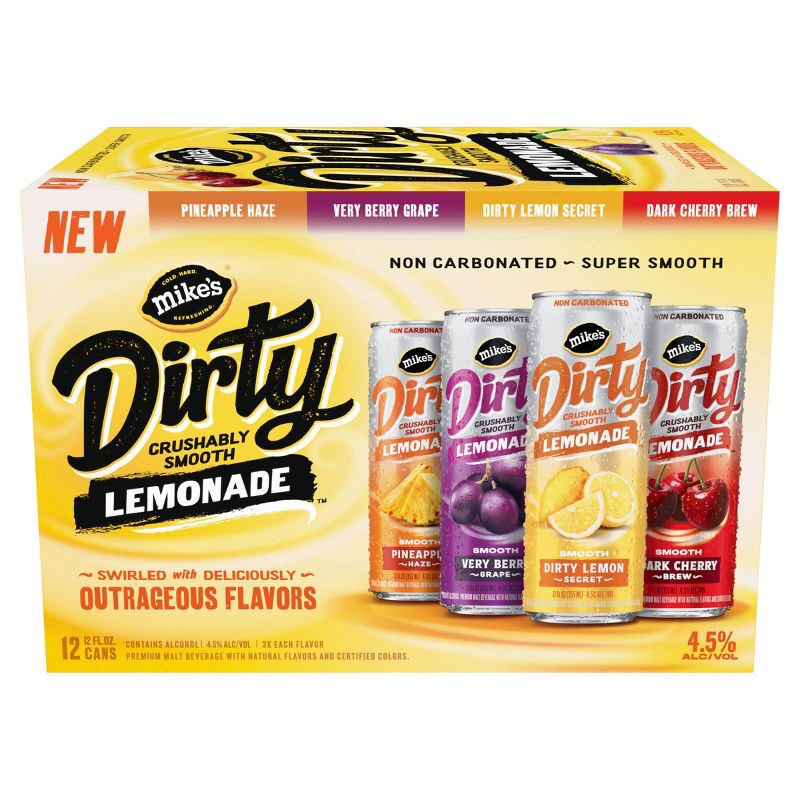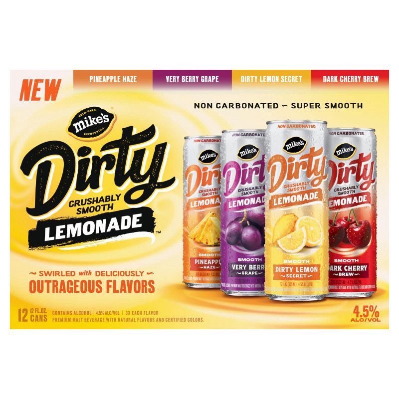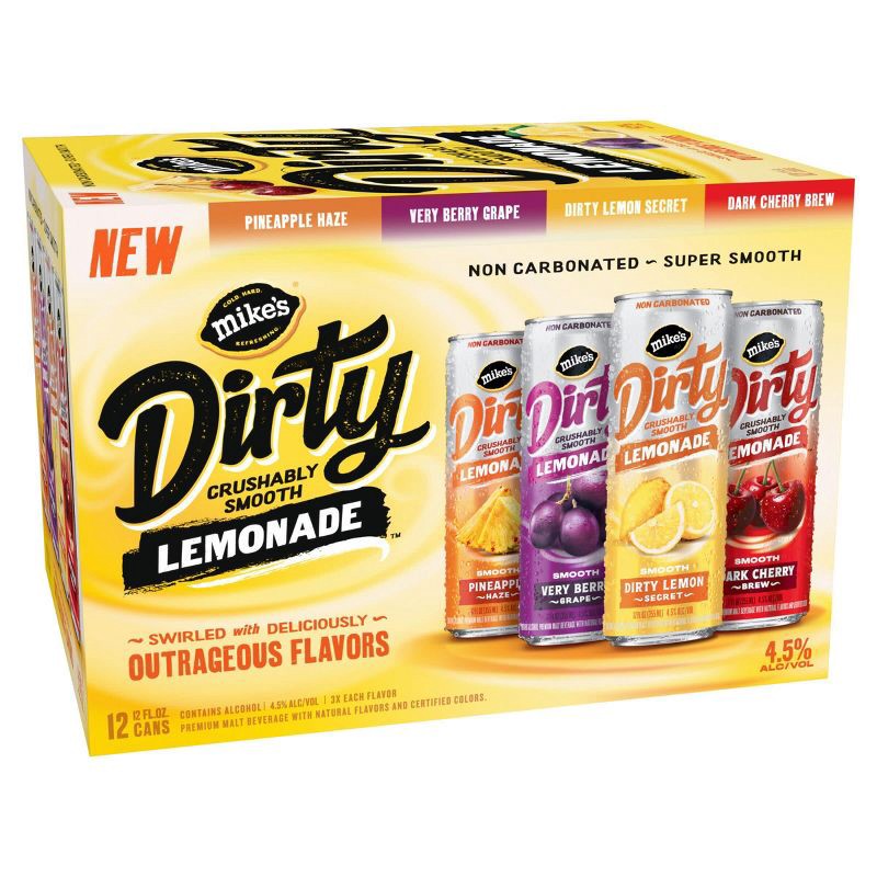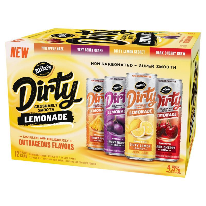 Mike's DIRTY Variety Pack delivers a super smooth, bold twist on lemonade with rich, layered flavors and no carbonation. Each sip starts with the bright taste of lemon, then opens up to unexpected m…