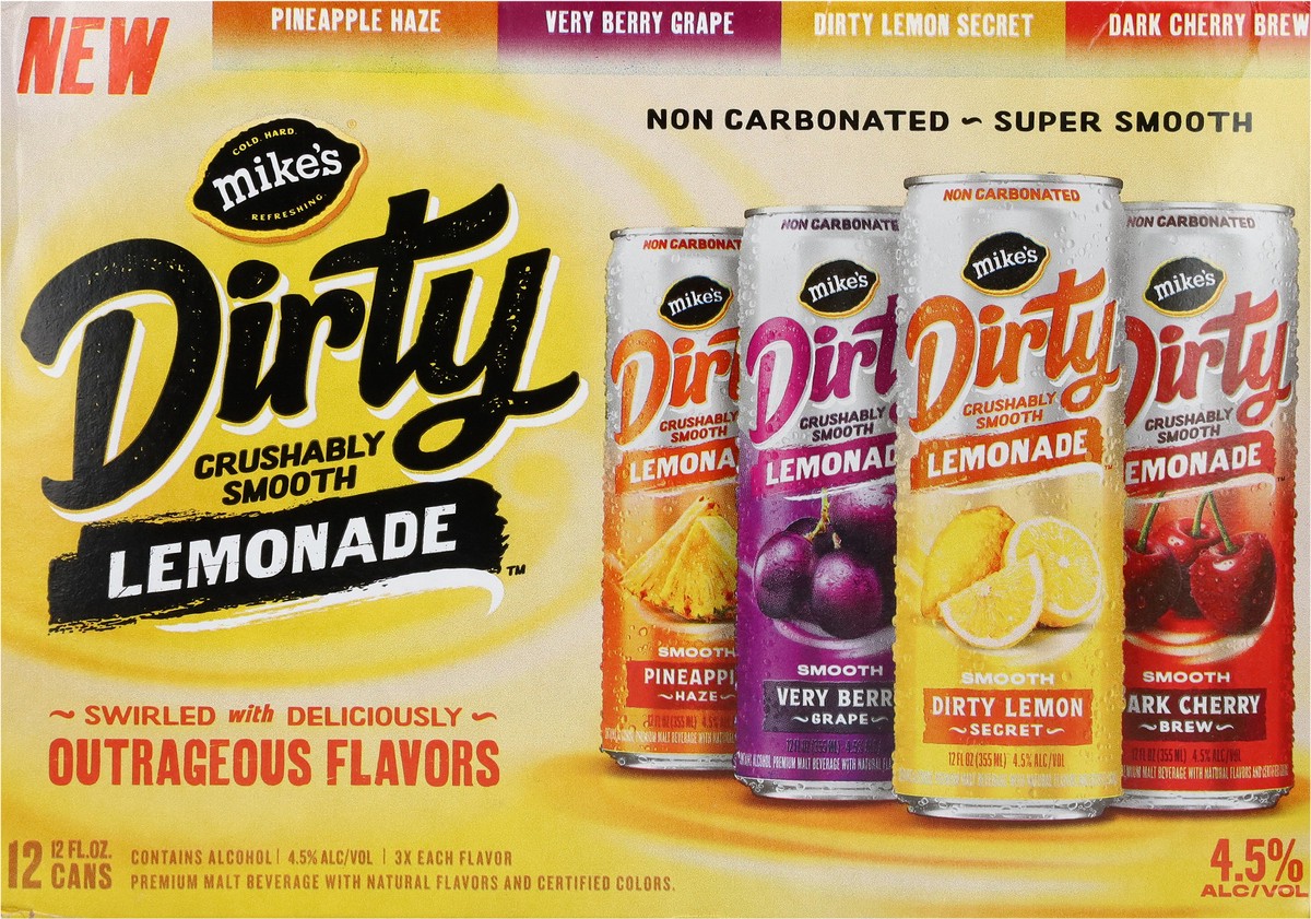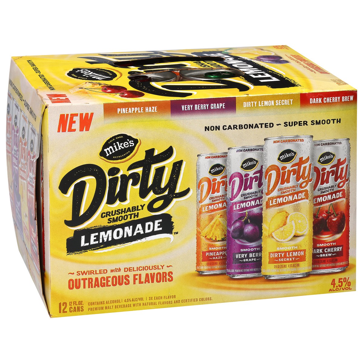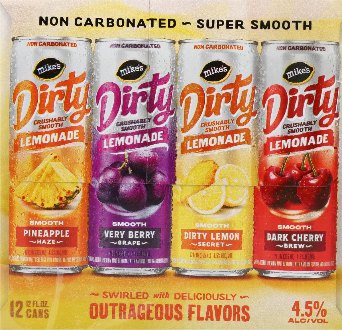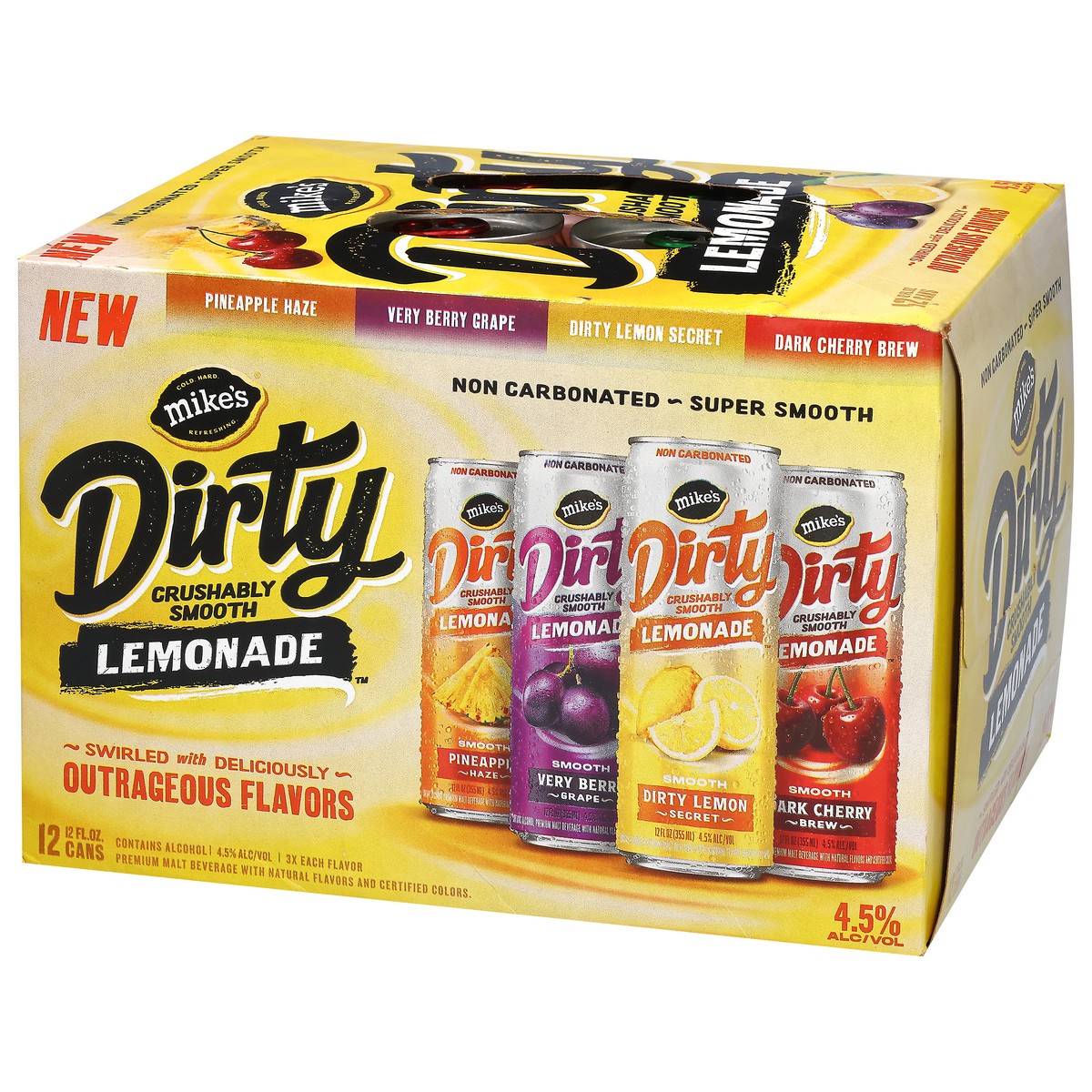 Mike's DIRTY Variety Pack delivers a super smooth, bold twist on lemonade with rich, layered flavors and no carbonation. Each sip starts with the bright taste of lemon, then opens up to unexpected m…