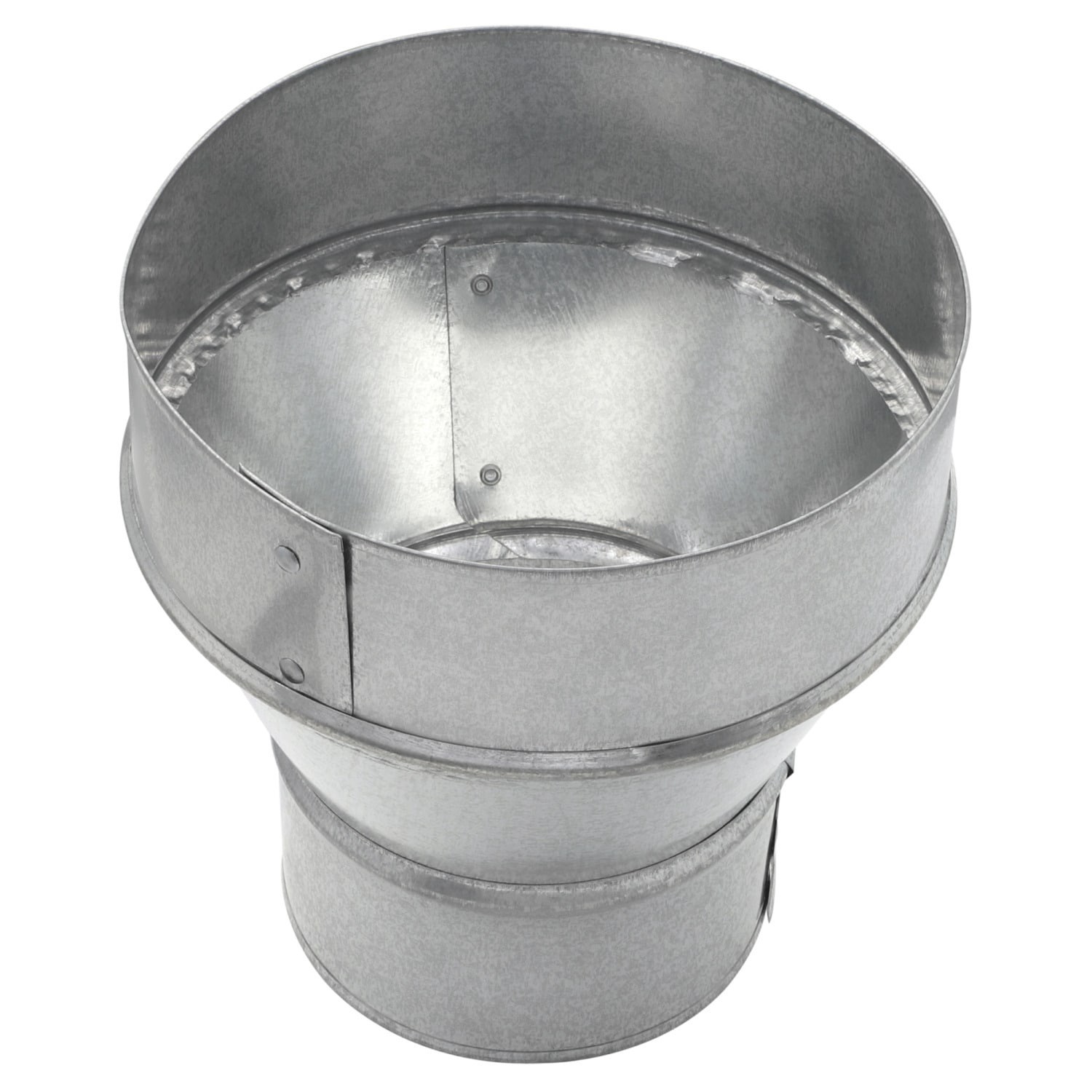 Reduces or increases the diameter of galvanized round pipe. Connects 6-in pipe to 4-in pipe in a run of round duct. Constructed from 30-gauge galvanized steel for durability and rust resistance. Featu…