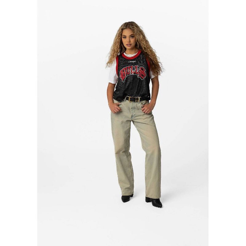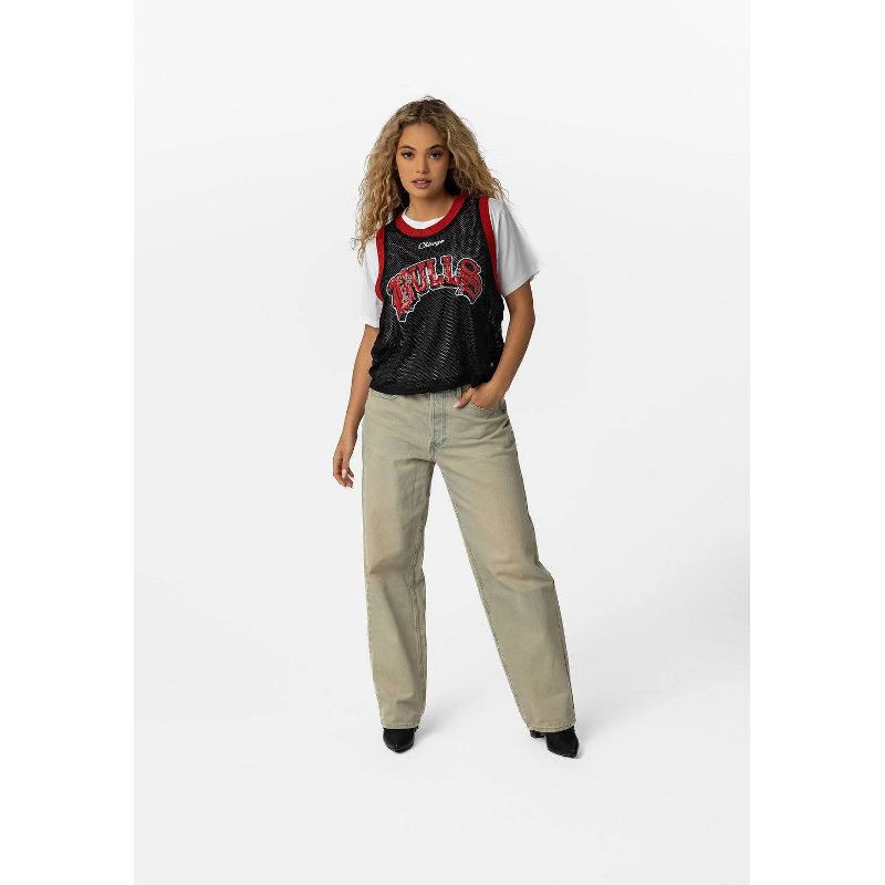 Elevate your game-day style with the Bulls Crop Twofer Jersey Tee, a versatile piece designed for both comfort and style. This two-in-one design combines a mesh top silhouette with a classic tee, perf…