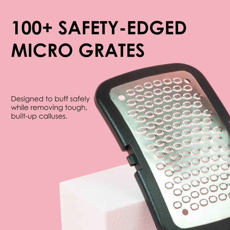 - 100+ safety-edged micro grates - rRemoves dry, hard, thick calluses with ease