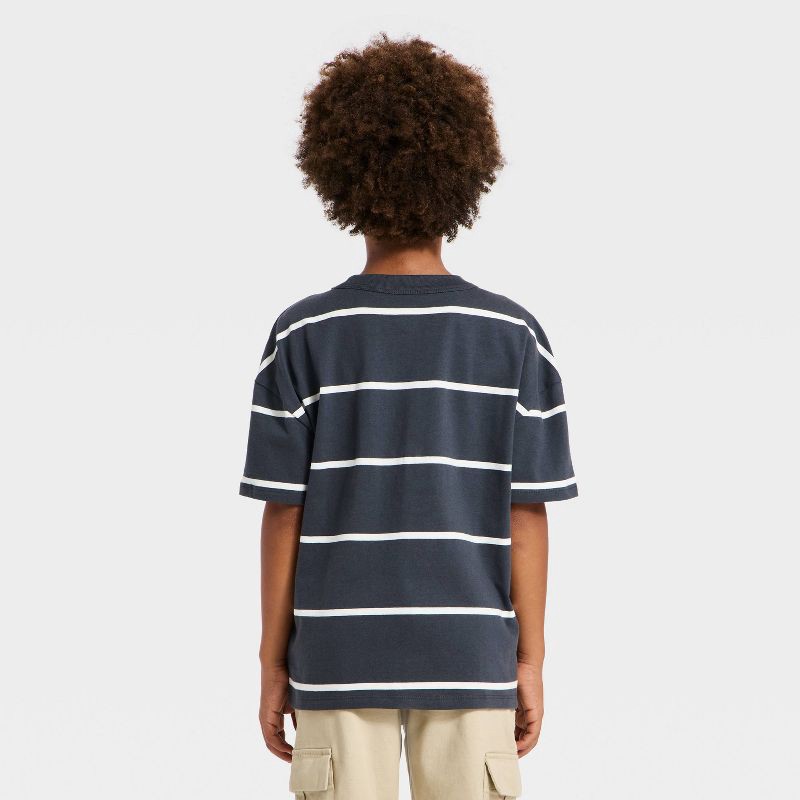 Boys' Short Sleeve Striped Oversized T-Shirt - Cat & Jack™ Charcoal Gray XL
