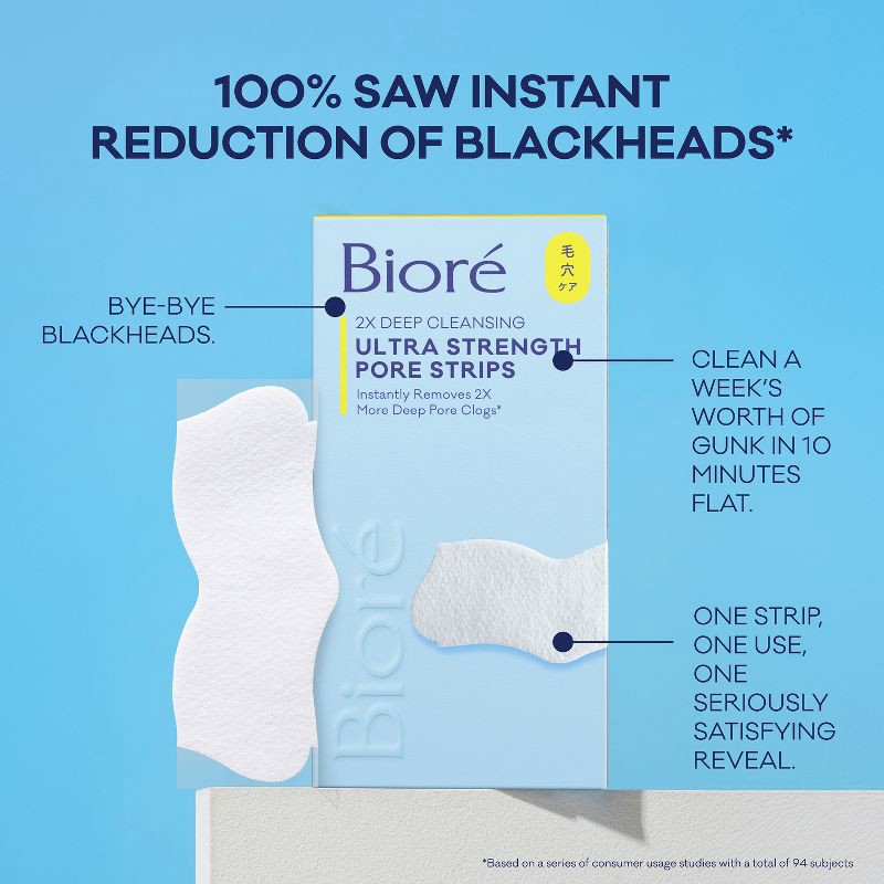 - BINDS TO BLACKHEADS, NOT SKIN - Using our patented c-bond technology, Biore Pore Strips are designed to be used once a week to bind to and remove blackheads not skin.