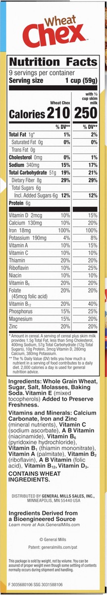 Wheat Chex Breakfast Cereal, Homemade Chex Mix Ingredient, Family Size, 19 oz