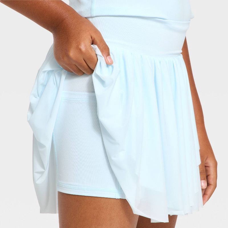 Girls' Mesh Pleated Skort - All In Motion™ Light Blue L