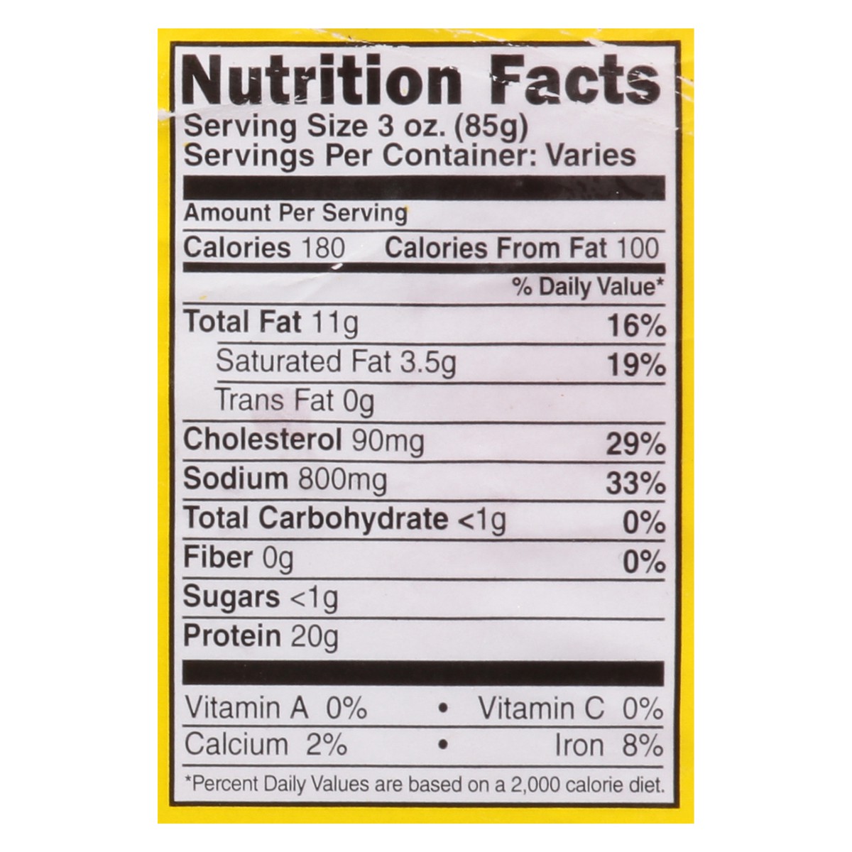 Cured with Water, Salt, Sugar, Sodium Erythorbate, Sodium Nitrite.