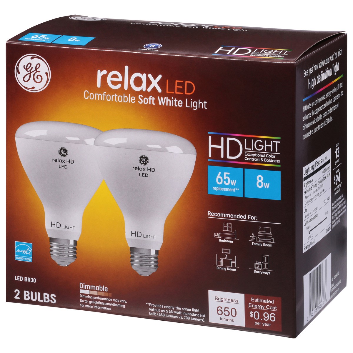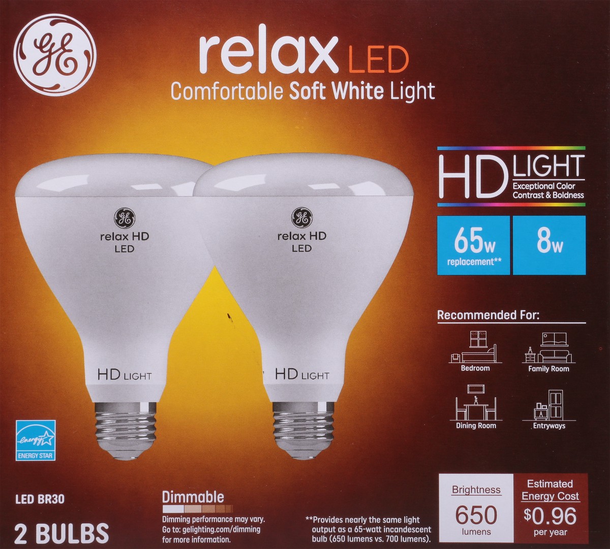 Ge Led Hd Relax 8w-65w Br30 Flood Light - 2 Ct