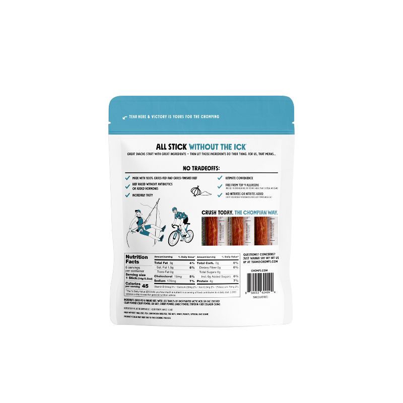 - QUALITY SNACKING - Each .5oz chompling snack stick has 4g of protein, zero sugar and is just 45 calories