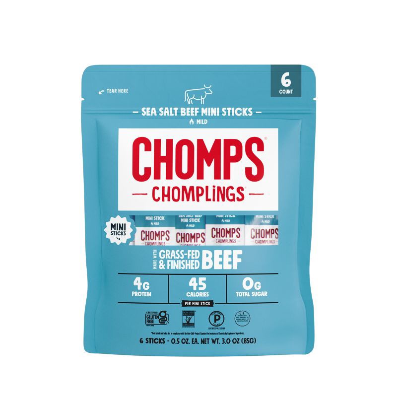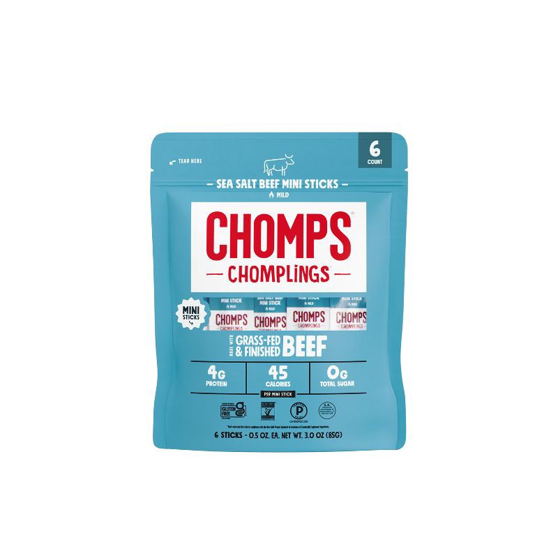 Chomps Snack Sticks Chomps Chomplings Sea Salt Beef Mini Sticks - 3oz/6ct