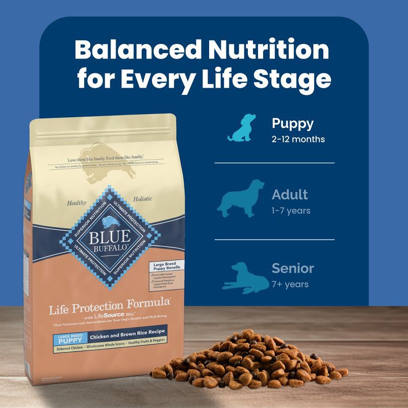 - Contains: One (1) 24-lb. bag of BLUE Life Protection Formula Large Breed Dry Puppy Food, Chicken and Brown Rice Recipe