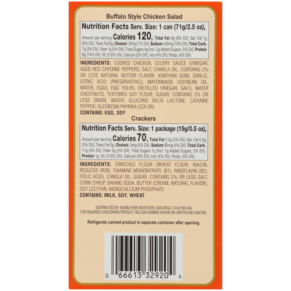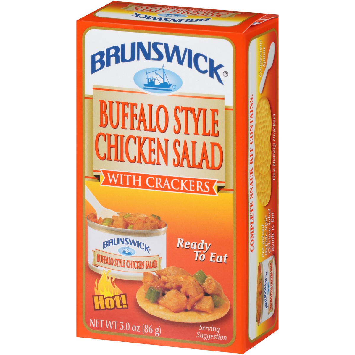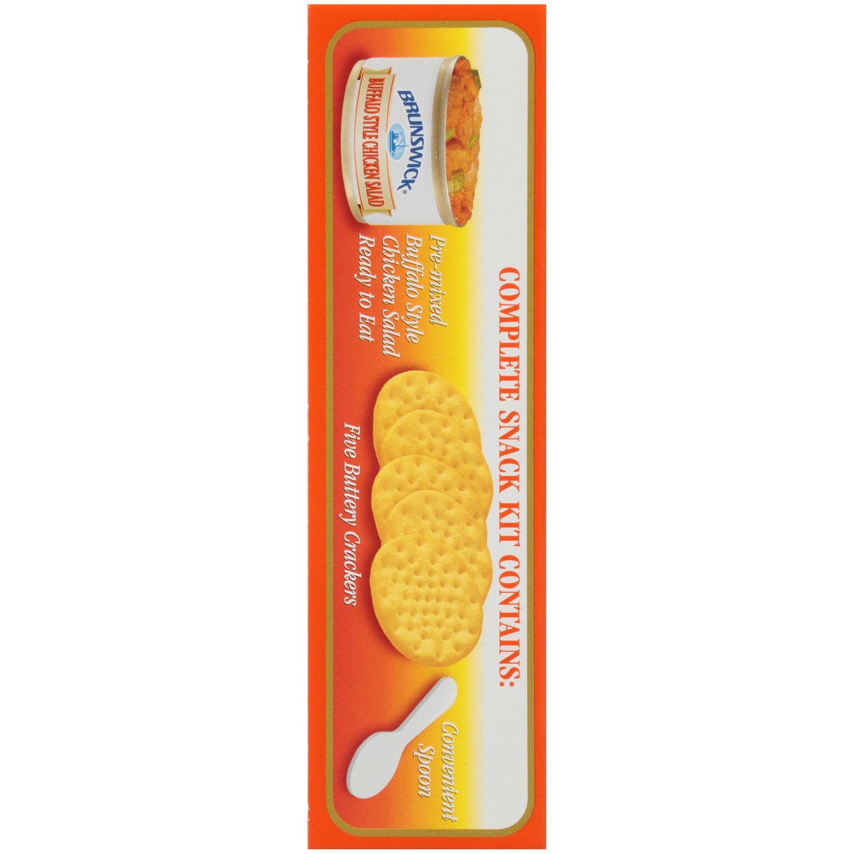 Complete Snack Kit Contains: pre-mixed buffalo style chicken salad ready to eat; five buttery crackers; convenient spoon. Ready to eat. Now! Easy peel foil lid. For inquiries concerning product includ…