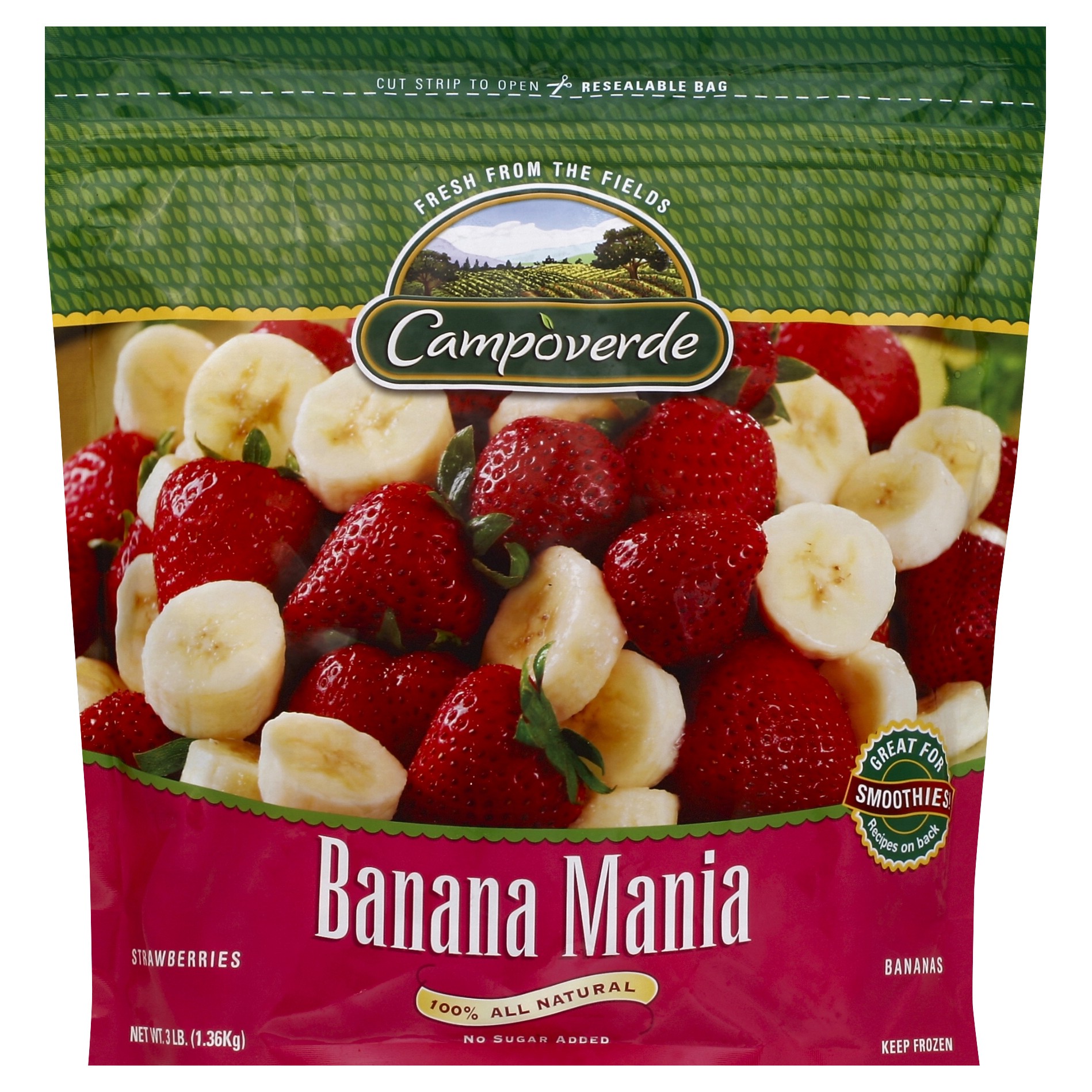 Strawberries. Bananas. 100% all natural. No sugar added. Great for smoothies! Recipes on back. Resealable bag. Fresh from the fields. The fruits in Campoverde Banana Mania are frozen at their peak of …
